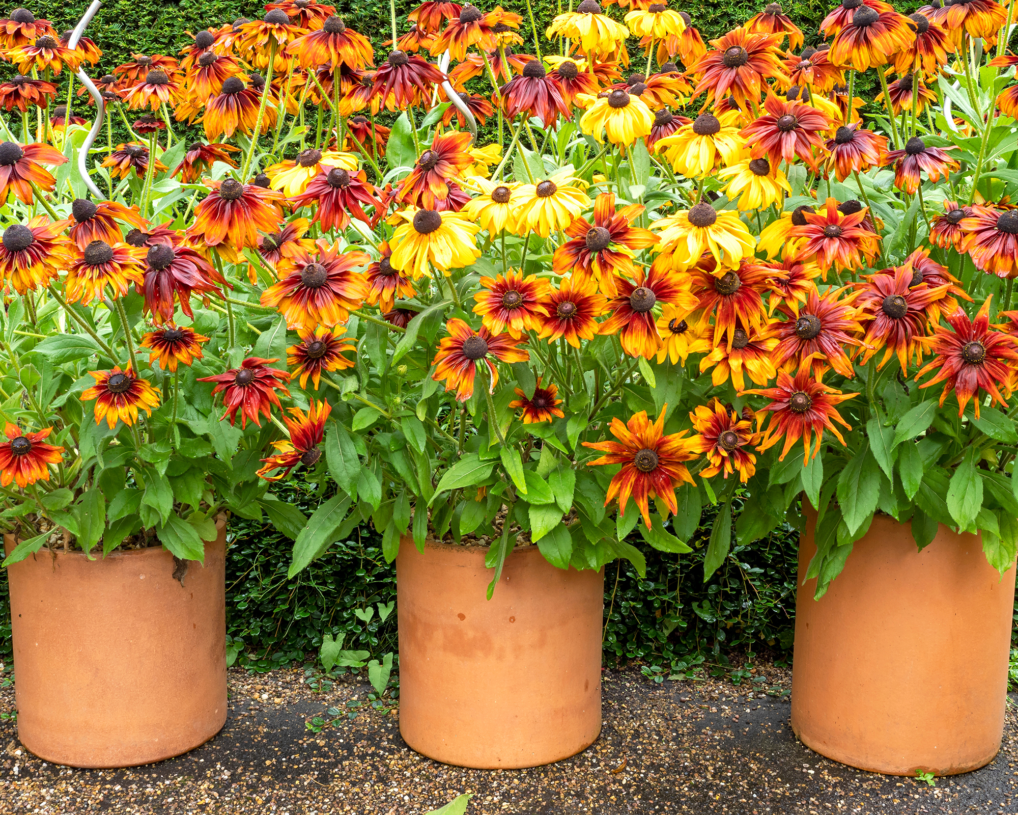 Black-eyed Susan, även känd som Rudbeckia, är en lättigenkännlig växt med bronsorange kronblad och en svart mitt. Växterna ger en fin dimension i trädgården eftersom de kan bli upp till 90 cm höga. Med åren kommer de att öka i antal eftersom blommorna självsås.