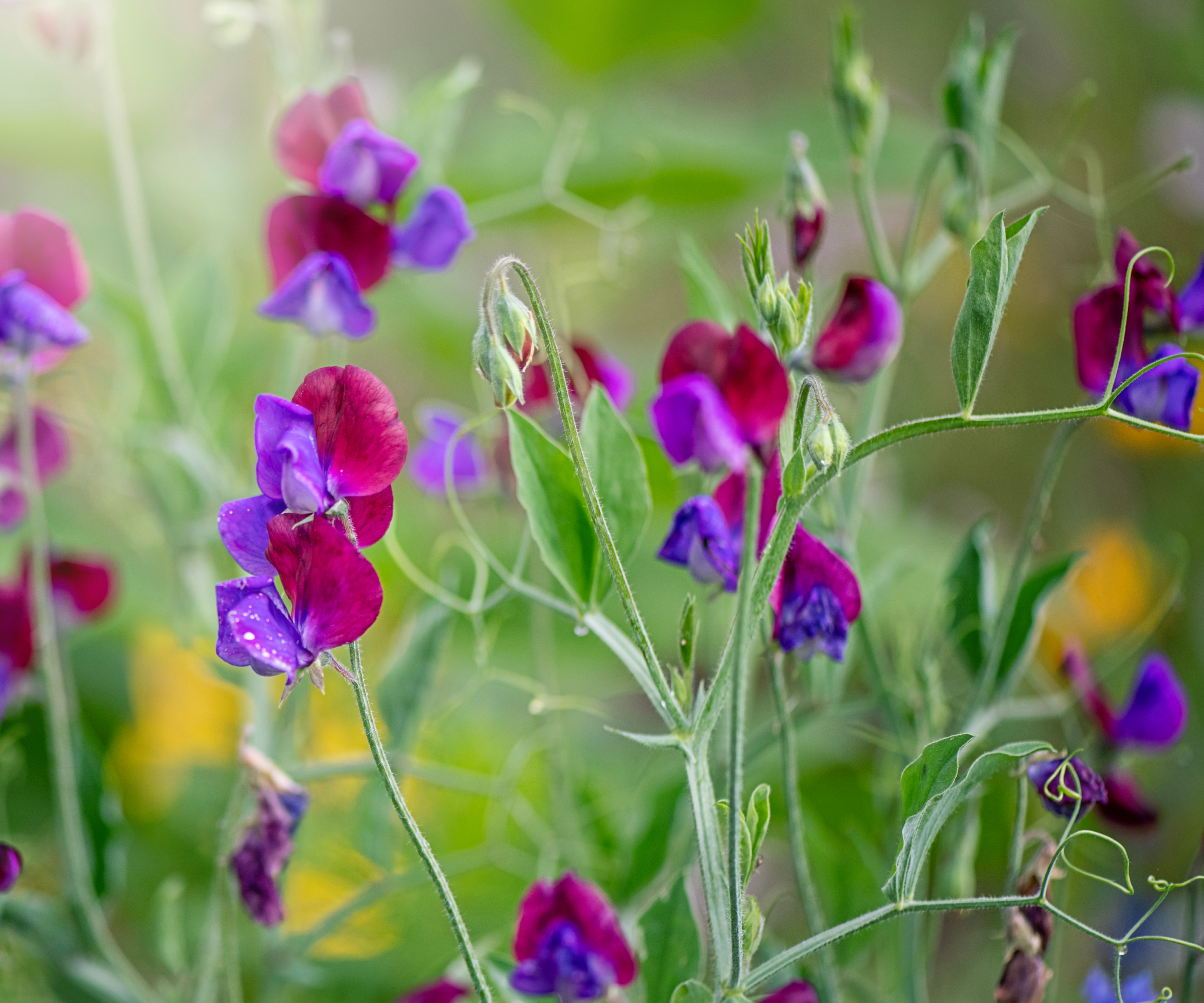 Sötärtor är ettåriga klätterväxter, så sätt upp ett stöd, till exempel ett spaljé. De är snabba att odla och blommar ofta redan en månad efter plantering.