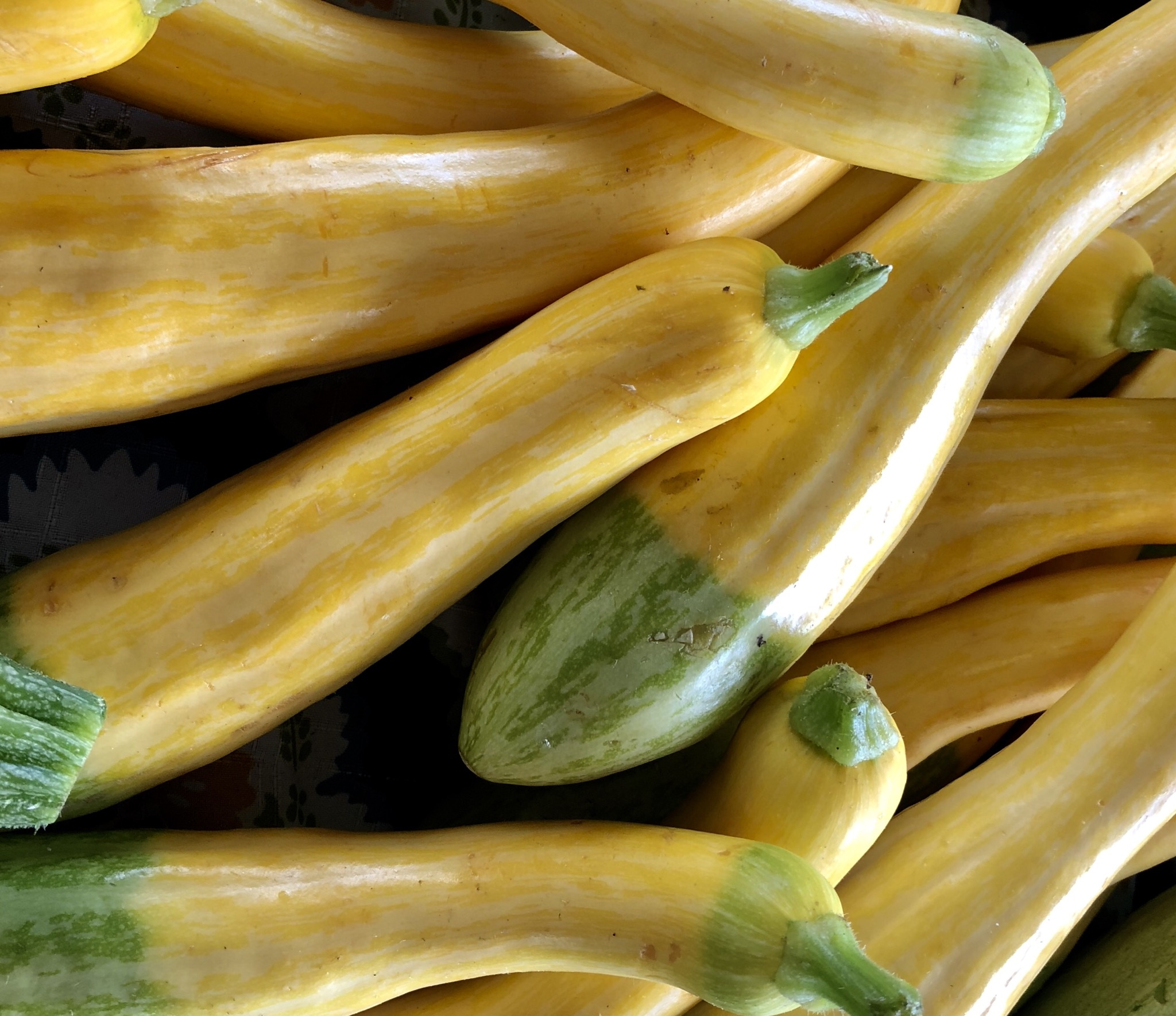 Zucchini är inte bara grön. Den finns också i en lysande gul färg som har ungefär samma smak, kanske lite sötare, än grön zucchini. I båda fallen betyder större inte alltid bättre. Frukten växer snabbt och om du inte kollar varje dag kan du få zucchini som är stora som ett basebollträ. Tyvärr saknar dessa enorma zucchini något av sin smak och fröna och skalet blir sega, så plocka dem när de är små.