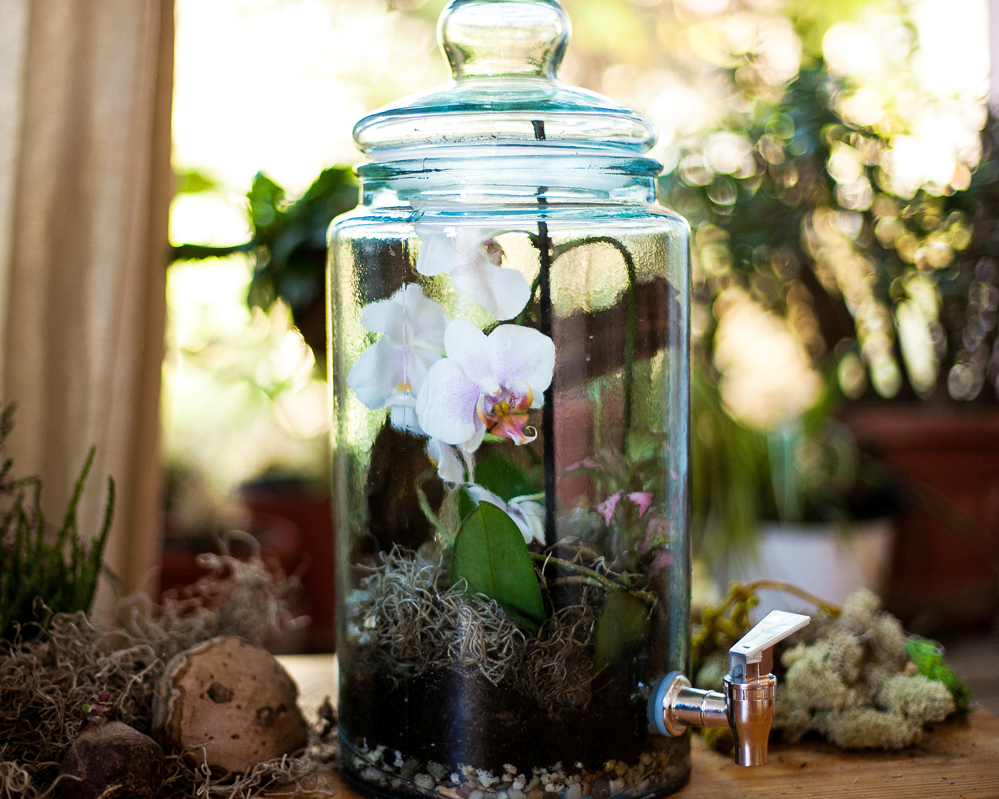 Orkidéterrarier är ett populärt val, eftersom deras exotiska blommor ser vackra ut inuti glaset.