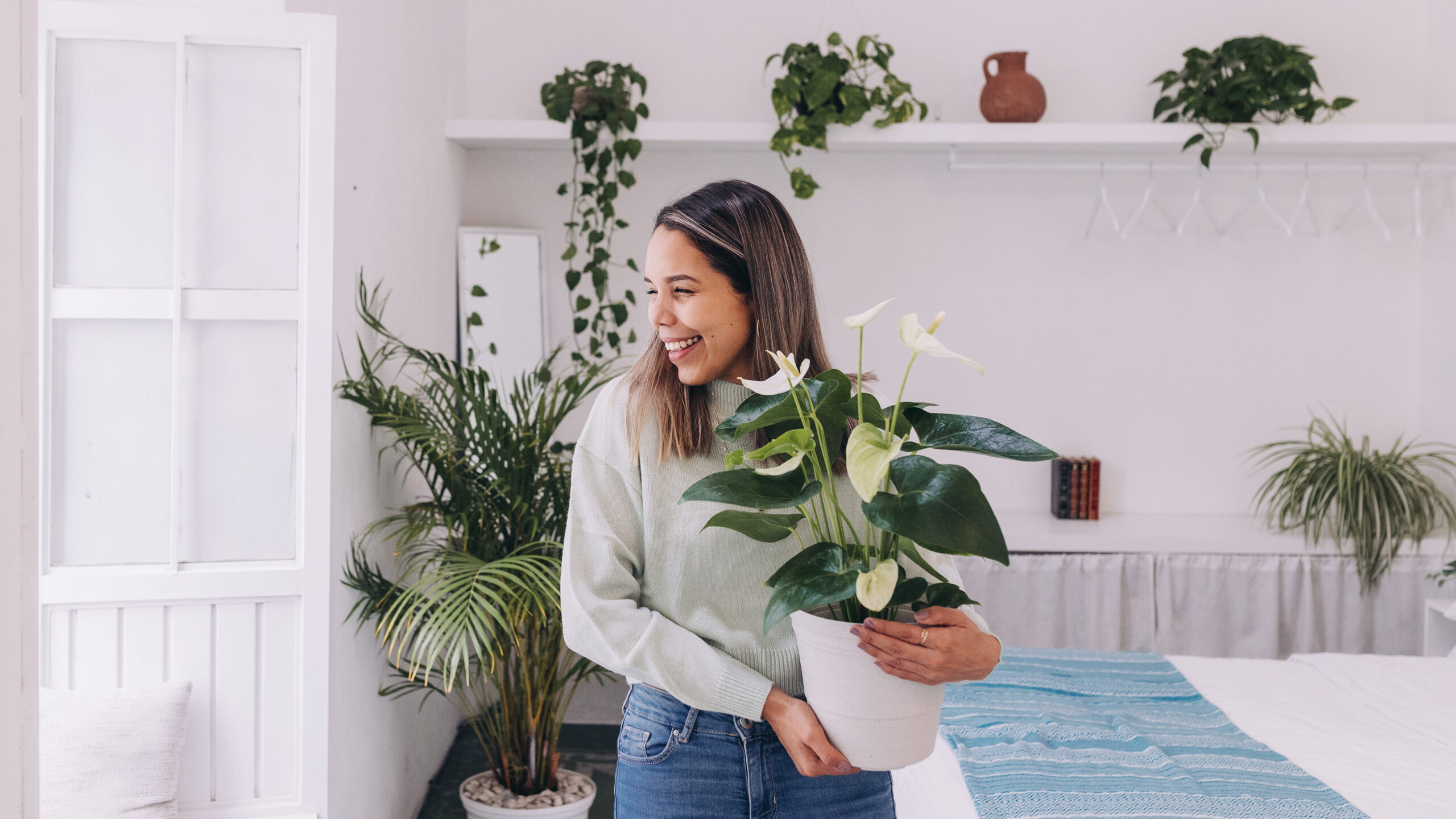 Biofilisk design handlar om hur vi upplever alla former av natur – inklusive växter, solljus, luft, vatten och djur. Att lägga till fler krukväxter i våra hem är dock ett av de enklaste sätten att känna sig kopplad till naturen.