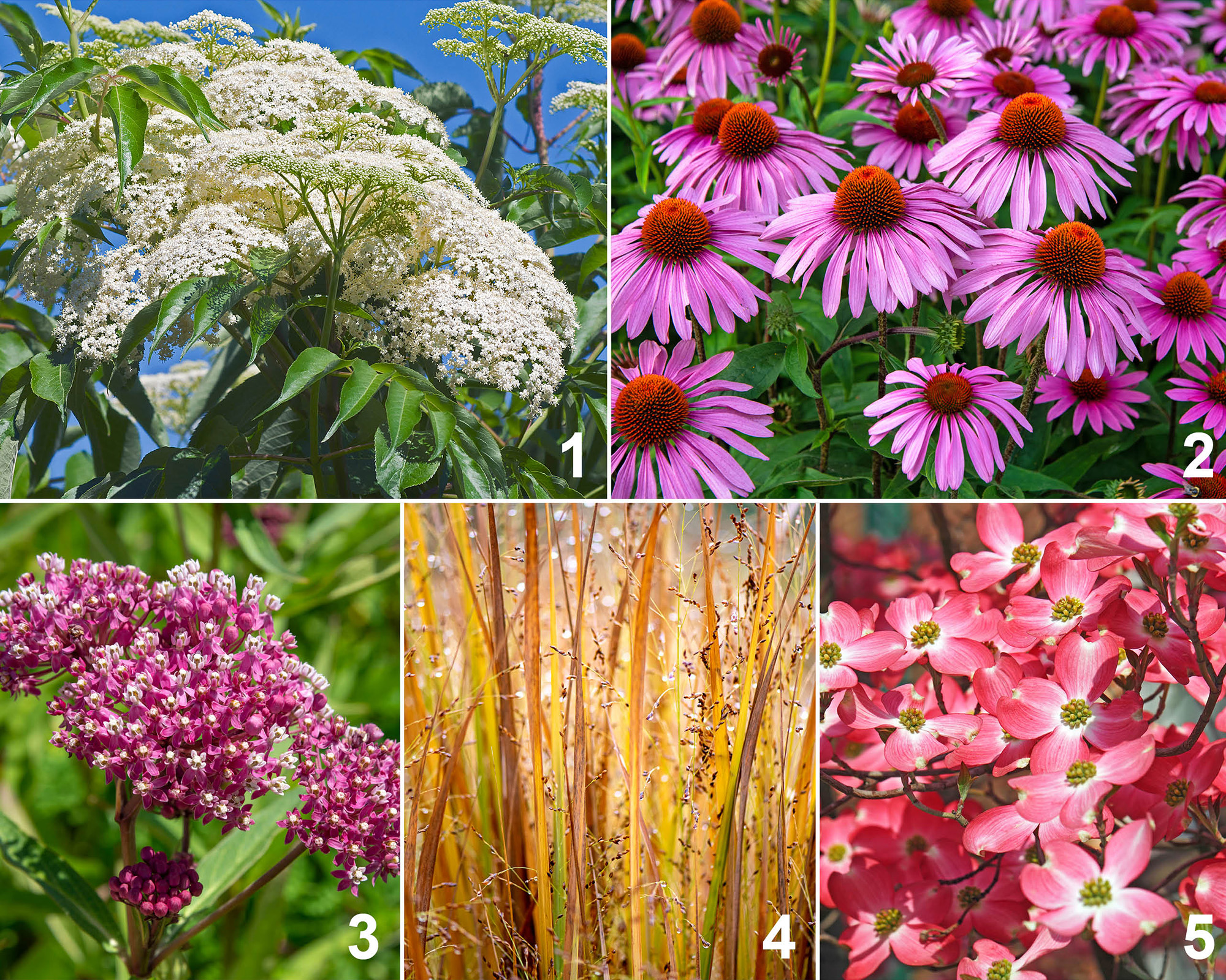 Många fågelvänliga buskar och perenner är lika lättskötta som gräs eller suckulenter. Låt bären och torra fröställningar sitta kvar så att fåglarna kan hitta föda under vintern.