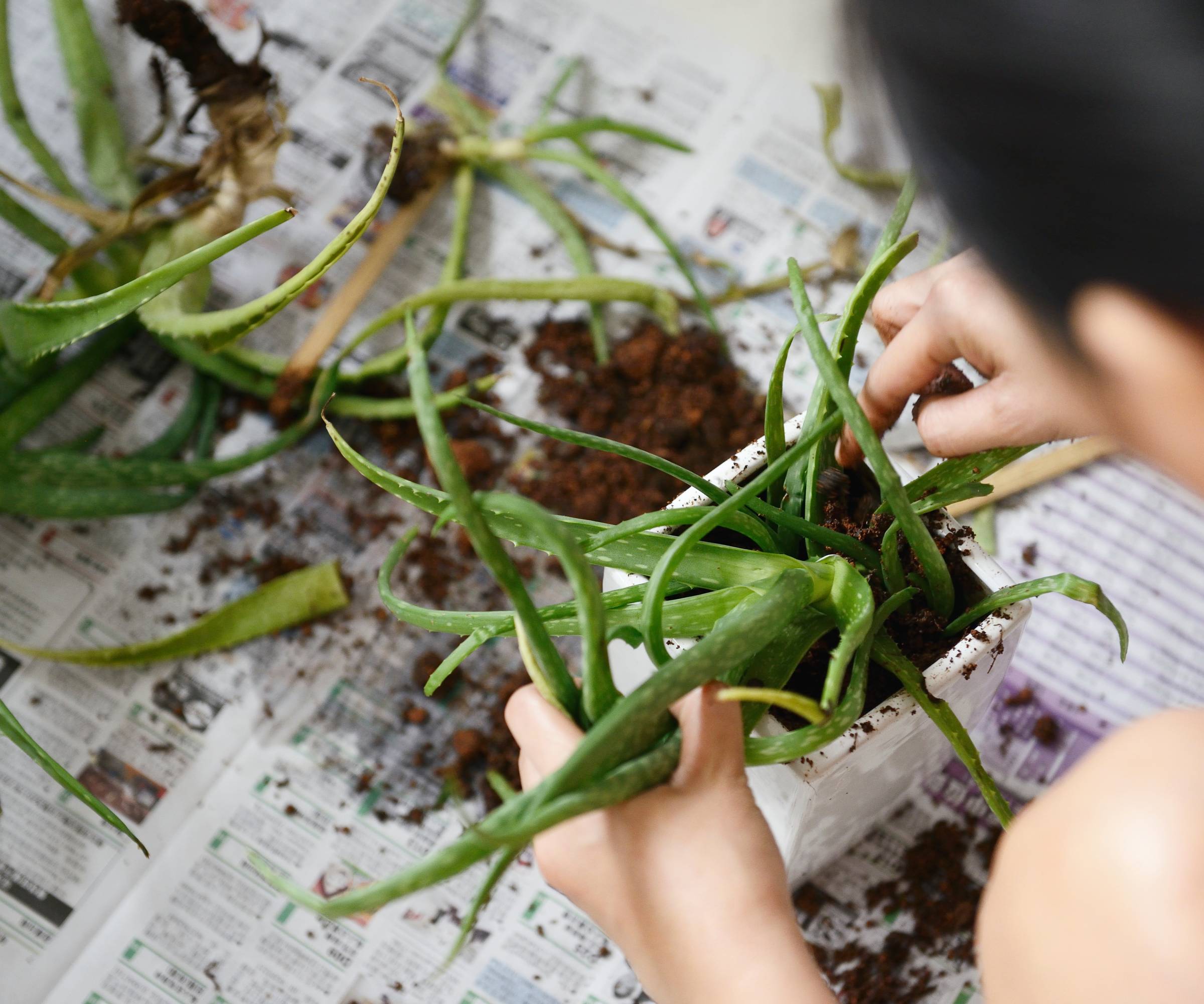 Detta är också den perfekta tiden att separera eventuella plantor eller avläggare från moderplantan. Detta ger huvudplantan mer utrymme att växa och ger dig nya aloeplantor att föröka.