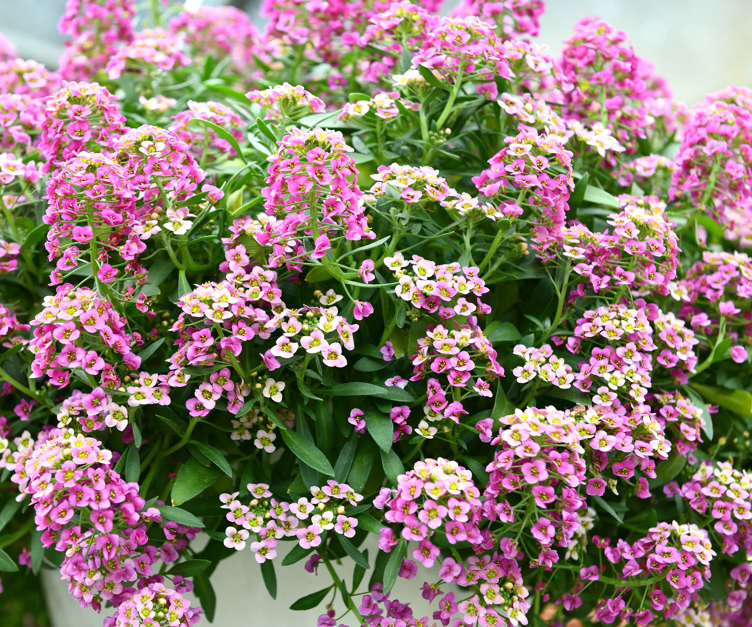 Söt alyssum producerar delikata rosa eller vita blommor i överflöd. Även om dessa hängande växter inte kan bilda långa hängande rankor, skapar deras vackra ”moln” av blommor en vacker form och fyllighet vid kanterna av stenpartier, rabatter, gångar och planteringslådor.