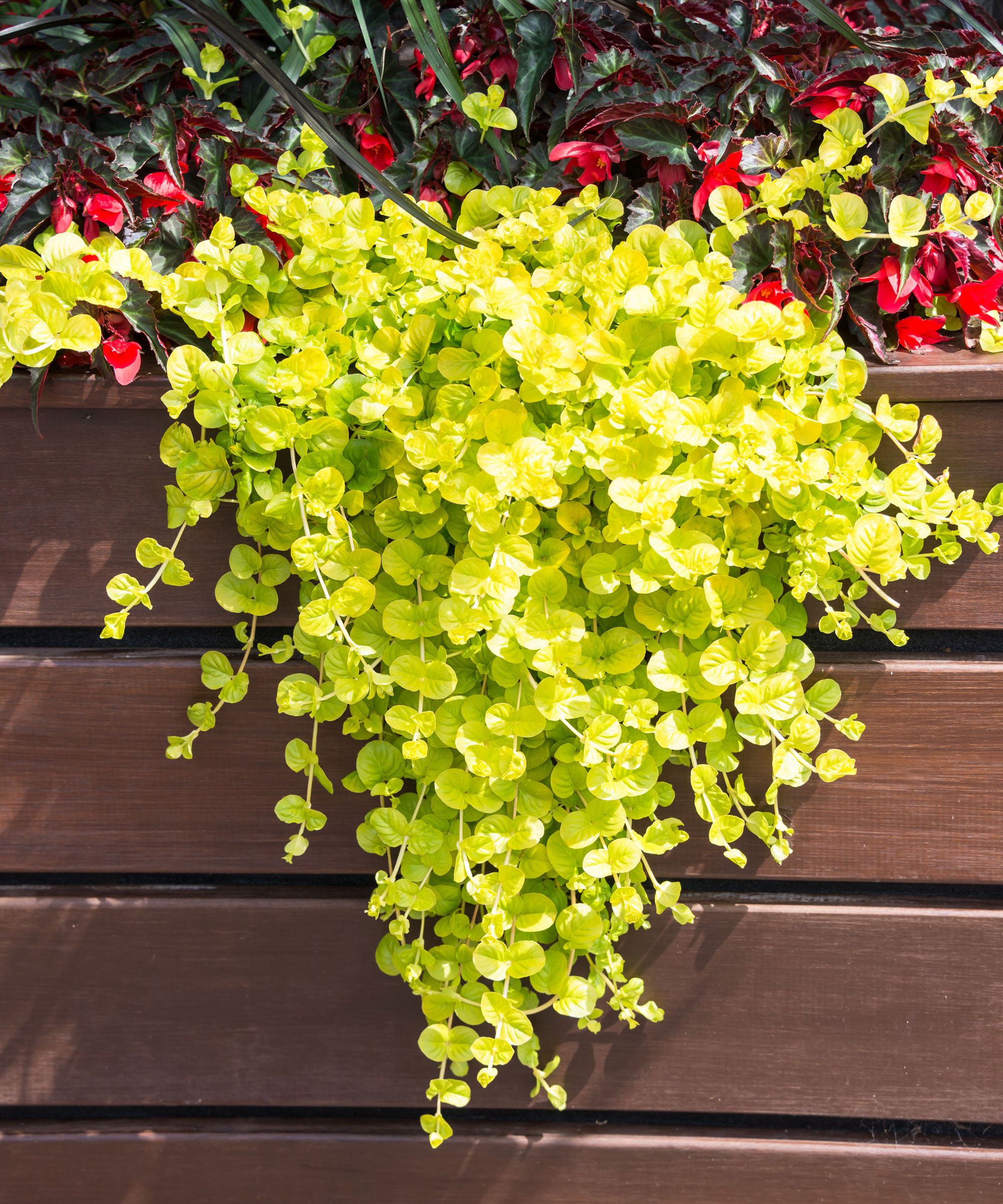Ett gott råd: denna vackra tumlare har rykte om sig att vara invasiv, så du kanske inte vill släppa den lös i dina rabatter och kantrabatter. Men om du vill fylla ett utrymme snabbt är krypande Jenny (Lysimachia nummuleria) en fantastiskt vacker hängväxt för krukor, tack vare sin vackra chartreusefärg, myntformade blad och hängande form.