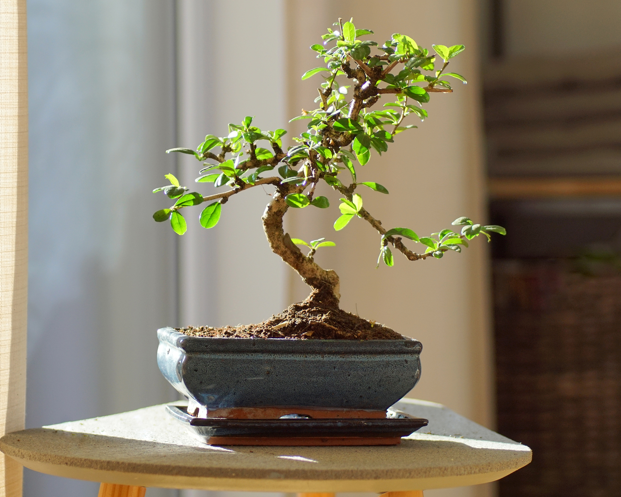 Detta är en av de enklaste bonsaiträdsorterna att odla, eftersom den tål torr luft och ojämnt ljus, vilket gör den perfekt för dem som föredrar en växt som inte kräver för mycket skötsel. Dess exponerade rötter gör den särskilt slående.