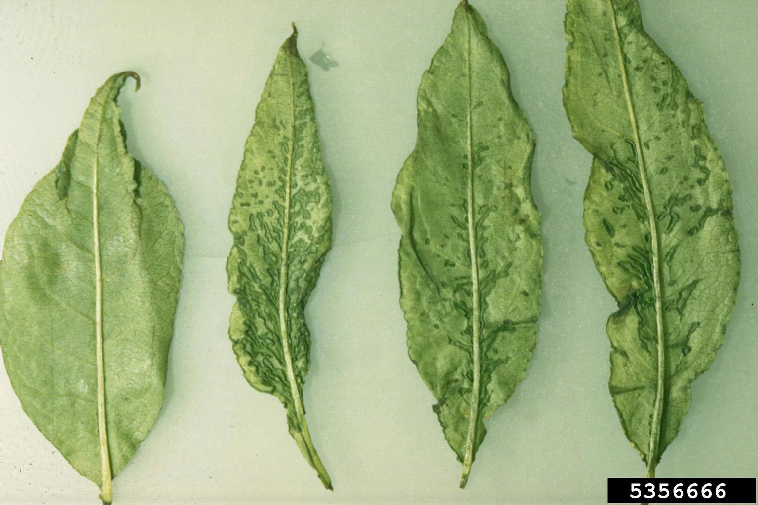 Om du ser extremt smala, vikta och deformerade blad är detta symptom på körsbärsraspbladsjukdom. Ofta drabbas de låga grenarna först och sjukdomen sprider sig långsamt uppåt i trädet.