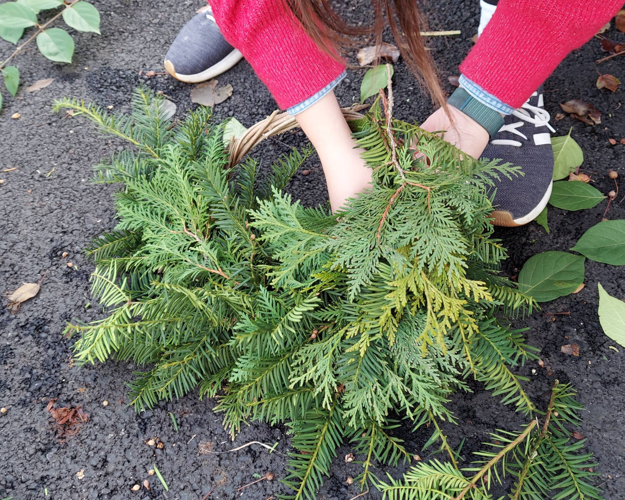 För att anamma Curious Garden-filosofin, använd enkla, naturliga material. På vintern, särskilt vid jul, innebär det grenar, bär, fröställningar, kottar och vintergröna kvistar, varav många kan du samla i din egen trädgård.