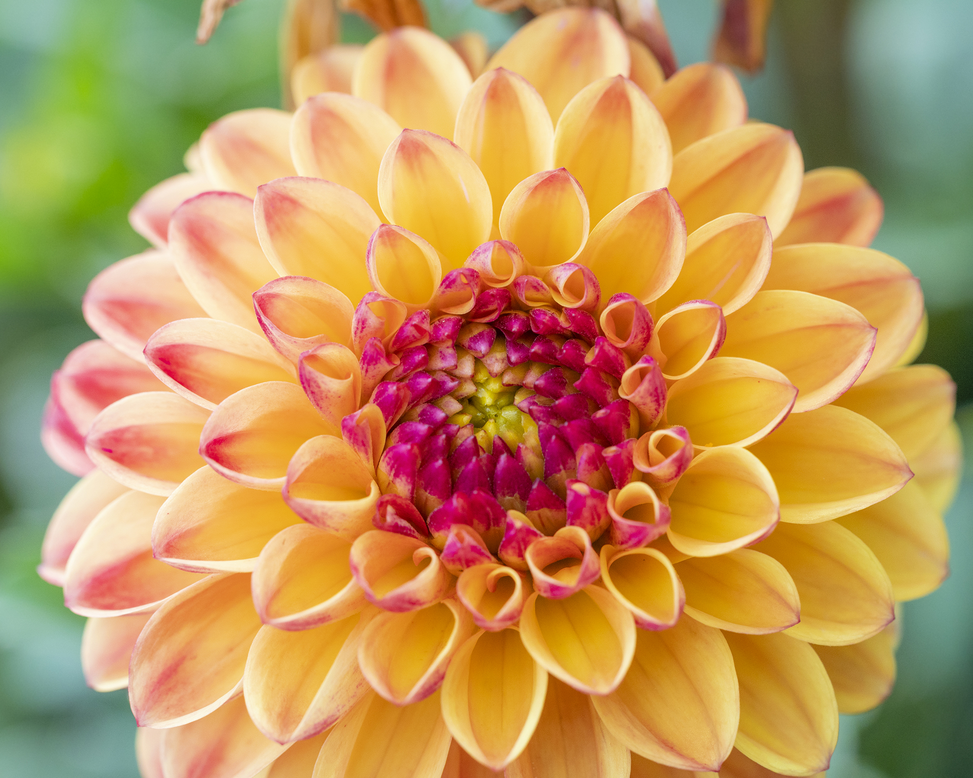 Om du vill ha en produktiv gul dahlia är Suncrest det självklara valet. De 10 cm stora, bollformade blommorna har en perfekt kanariegul nyans, men också en persikofärgad rodnad på kronbladens spetsar. Den producerar många blommor under hela säsongen, särskilt om man klipper bort vissna blommor. Blommorna håller också särskilt länge på plantan och tål dåligt väder.