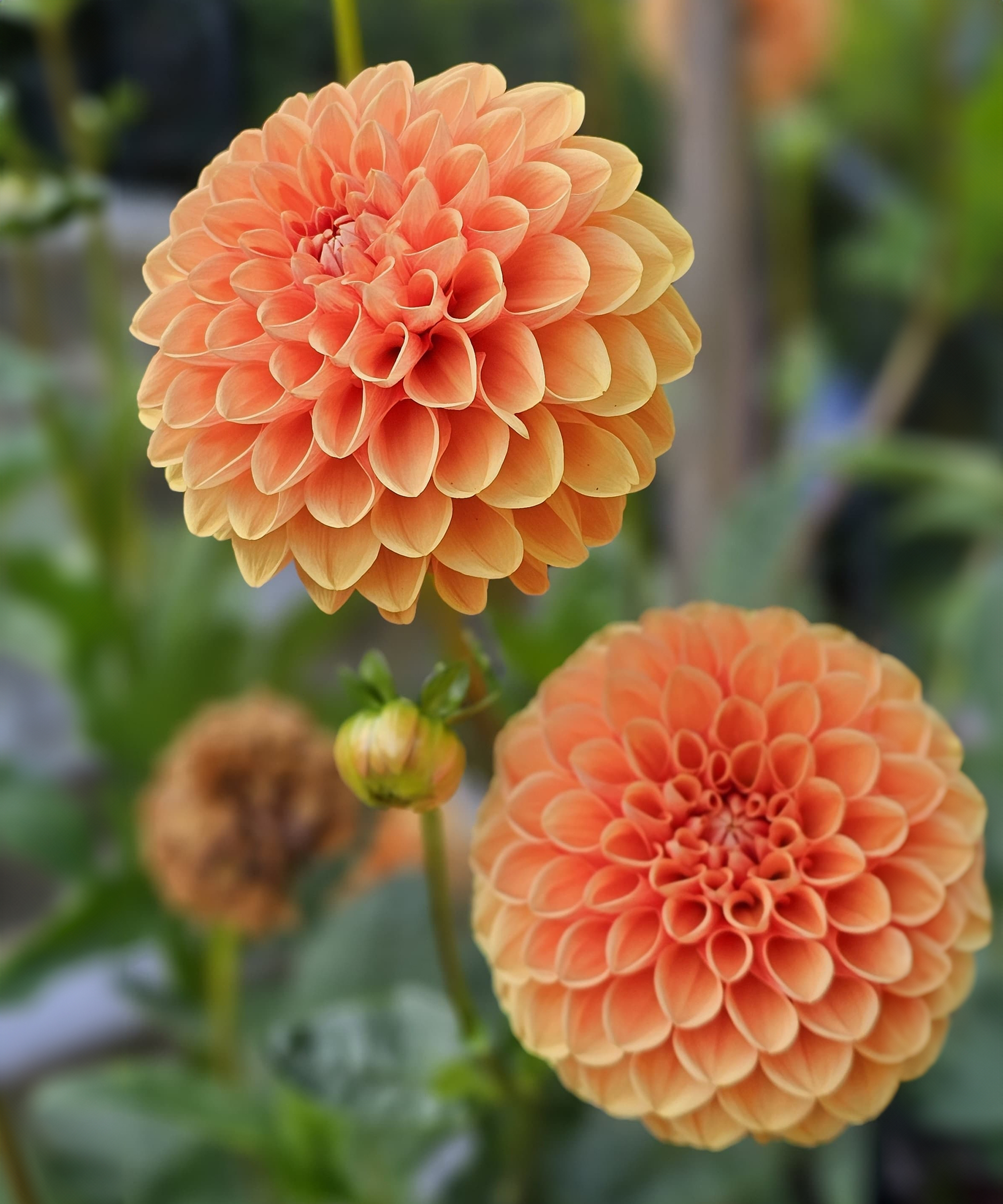En annan unik sort, Terracotta, är en halvkaktusliknande blomma i en rik, persikobrun färg. ’Terracotta’ är mycket produktiv och ger dig massor av blommor under sommaren och hösten. Den reagerar bra på att man klipper bort vissna blommor och fortsätter att blomma. Växten är stor, blir upp till 1,5 meter hög och blommorna kan bli upp till 13 cm breda.