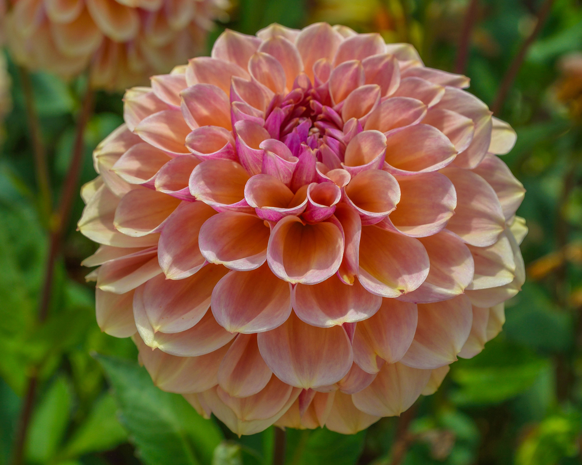 Denna vackra bollformade dahlia blommar rikligt. Den har också långlivade blommor som fortfarande ser bra ut även två veckor efter att de har klippts. Färgen är rosa-persikofärgad med lite gult i mitten av varje blomma. Med hjälp av deadheading kan du få många blommor från ’Clearview Peachy’ långt in på hösten. Växterna blir upp till 1,5 meter höga och varje blomma är cirka 10 cm i diameter.