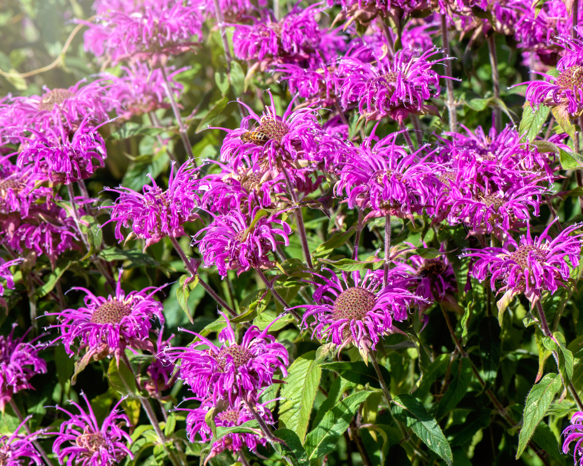 Wie der Name schon sagt, zieht diese hübsche mehrjährige Blume Bienen an. Die Goldmelisse ist heimisch und gehört zur Familie der Minzen. Sie wächst schnell und kann sich auf Bereiche ausbreiten, in denen Sie sie nicht haben möchten. Seien Sie daher beim Pflanzen vorsichtig. Kleinere Sorten eignen sich gut für Kübel. Mit feuchtem, aber gut durchlässigem Boden an einem sonnigen oder halbschattigen Standort können Sie sich im Sommer und Herbst an roten, rosa oder violetten Blüten erfreuen.