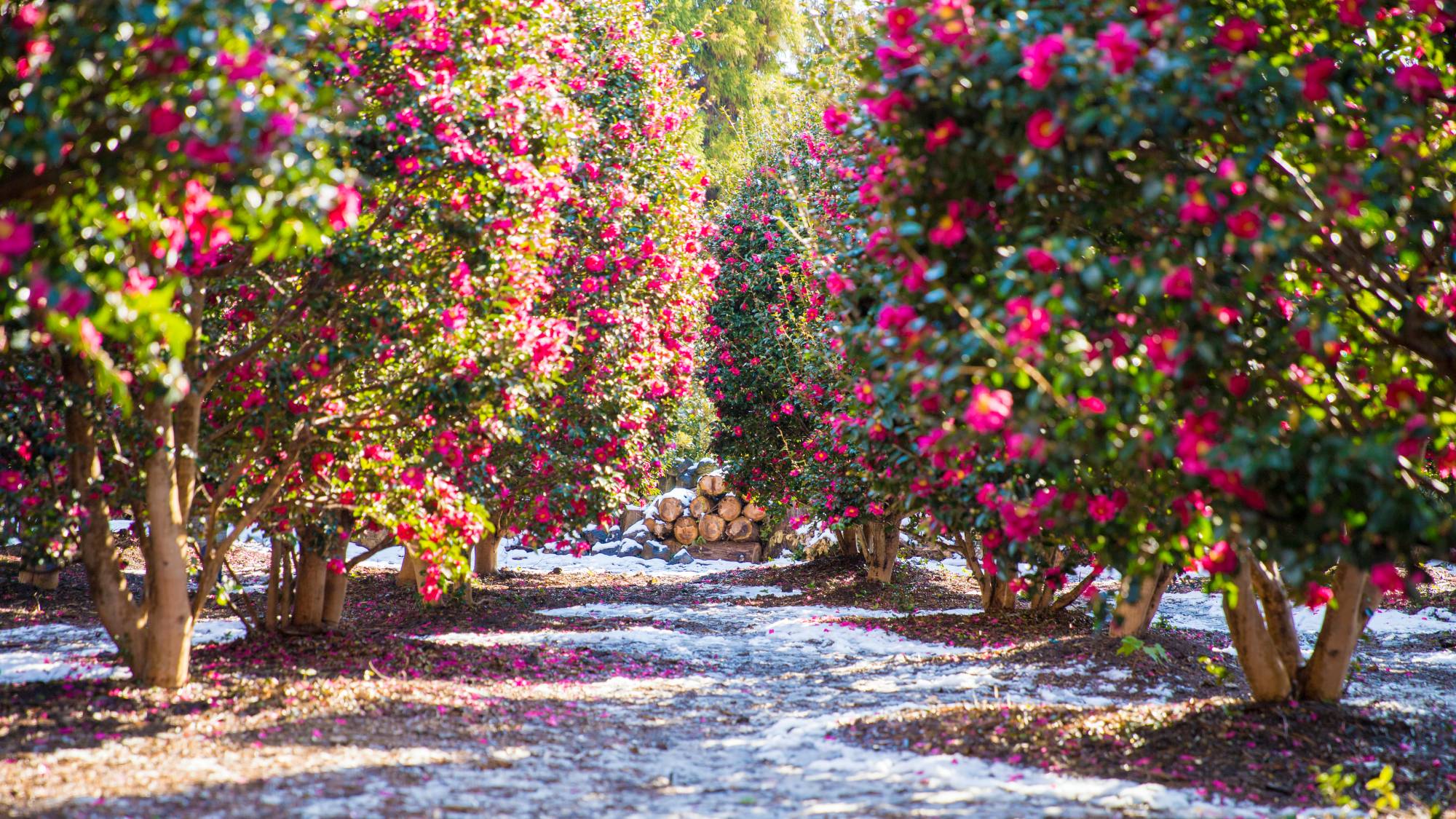 In den Klimazonen 7 bis 9? Schauen Sie sich die Kamelie „Yuletide“ an, die bei Lowe’s erhältlich ist und von November bis in die Weihnachtszeit hinein für farbenfrohe Akzente sorgt. Bewohner der Klimazone 6 können sich auf die Kamelie „Winter’s Joy“ verlassen, die bei Garden Goods Direct erhältlich ist und selbst die trübsten Tage im frühen Winter erhellt. Auch nachdem die Blüten verblüht sind, sorgen die glänzenden, immergrünen Blätter Ihres Kamelienstrauchs das ganze Jahr über für Farbe.