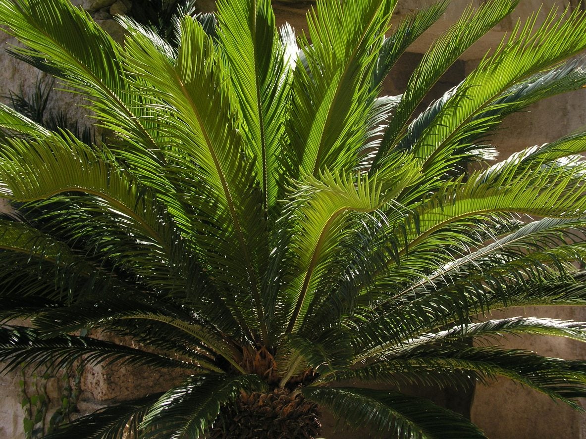 Wie viel Wasser benötigen Sagopalmen? Während der Wachstumsphase benötigen sie mäßig viel Wasser. Bei trockenem Wetter sollten die Pflanzen alle ein bis zwei Wochen gründlich gegossen werden. Sagopalmen sollten gründlich gegossen werden. Etwa 31 cm vom Stamm entfernt sollten Sie einen 5 bis 10 cm hohen Wall (einen Erdhügel) in einem Kreis um die Pflanze herum aufschütten. Dadurch wird das Wasser über dem Wurzelballen zurückgehalten und kann direkt nach unten abfließen. Füllen Sie den Raum innerhalb des Erdwalls mit Wasser und lassen Sie es ablaufen. Wiederholen Sie den Vorgang, bis die obersten 31 cm des Bodens feucht sind. Gießen Sie zwischen diesen gründlichen Bewässerungen nicht – lassen Sie den Boden austrocknen, bevor Sie erneut gießen. Der Wasserbedarf für gerade umgepflanzte Sagopalmen ist etwas anders. Damit sich eine Sagopalm etablieren kann, halten Sie ihren Wurzelballen in den ersten vier bis sechs Monaten des Wachstums konstant feucht, reduzieren Sie dann die Bewässerung und lassen Sie den Boden zwischen den Bewässerungen austrocknen.
