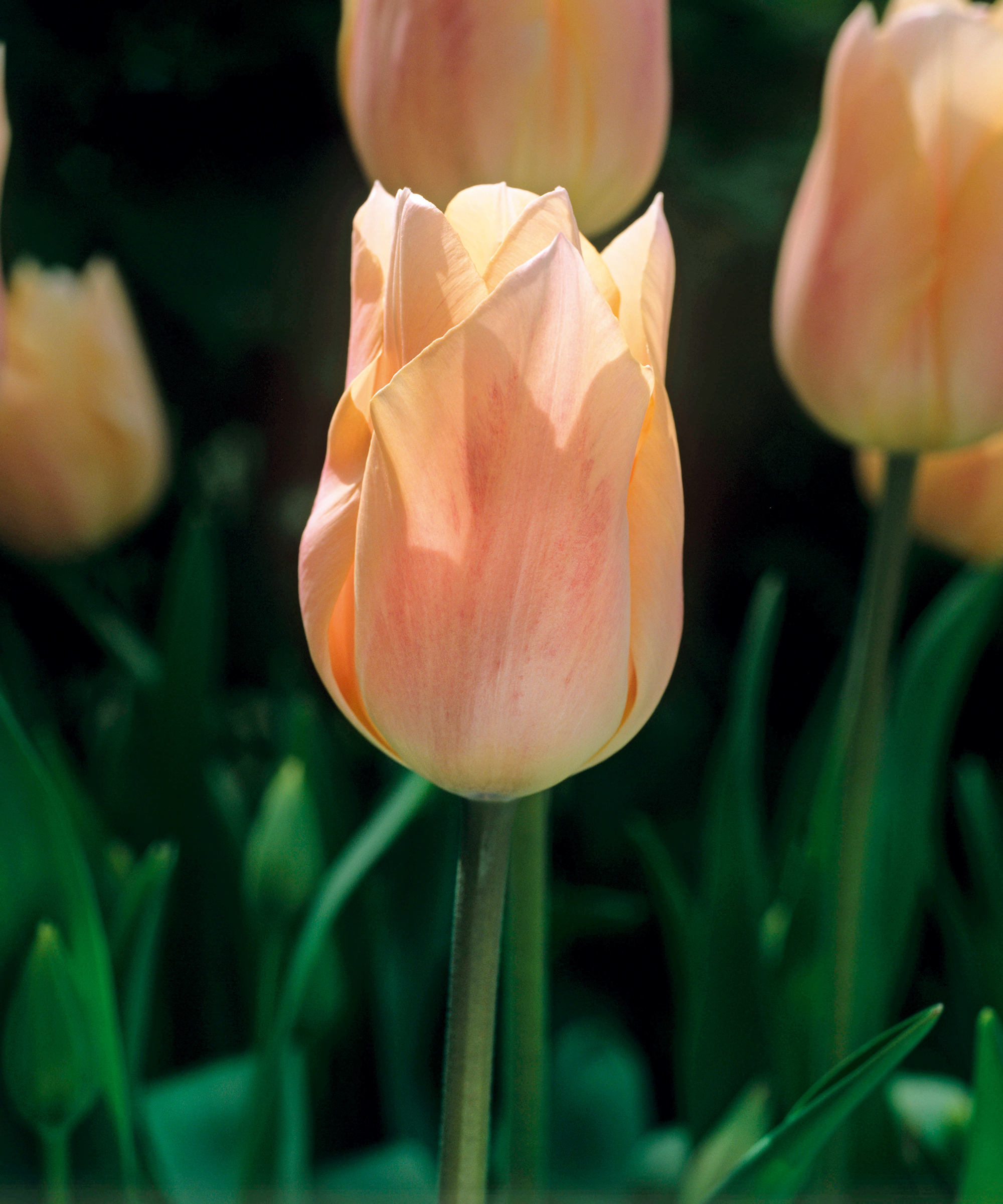 Die Tulpe Apricot Beauty hat eine lange Blütezeit und starke Stiele, sodass sich die Zwiebeln gut für die Pflanzung an exponierteren Standorten eignen.