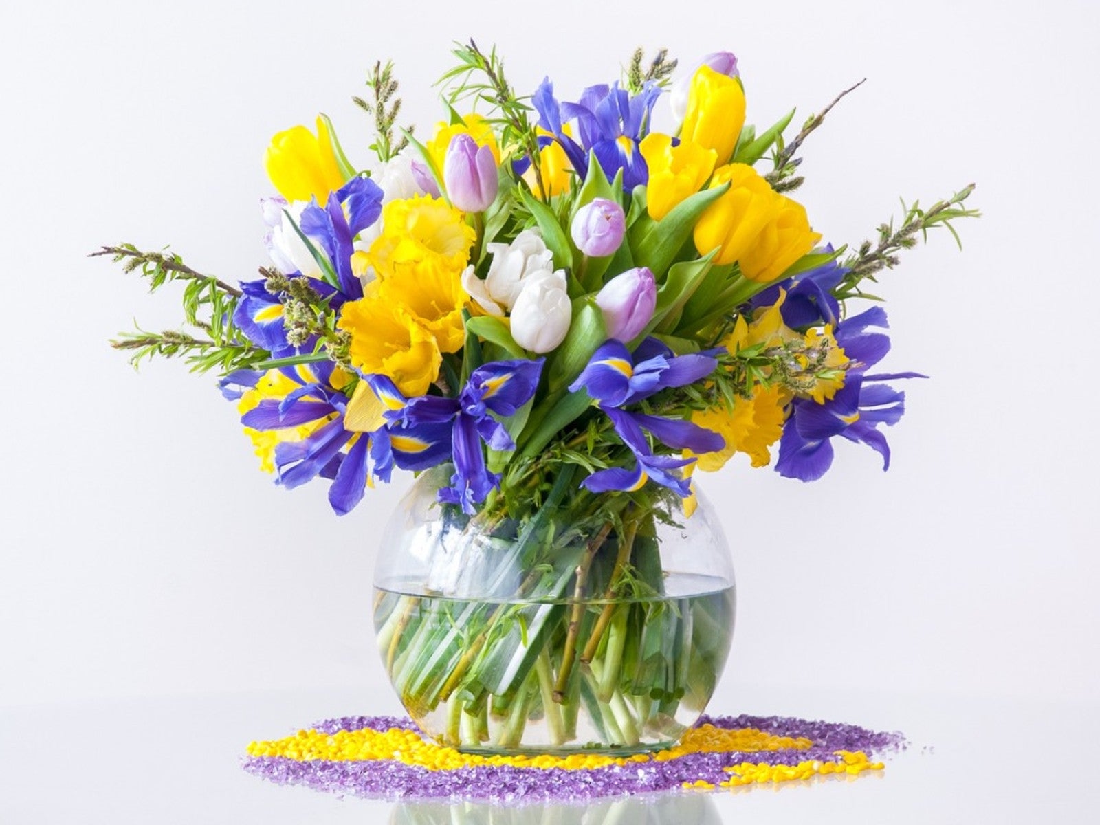 - Tulpen – Eine der schnellsten Dekorationsideen für den Karneval ist es, eine Vase mit leuchtend gelben und violetten Tulpen zu füllen. Haltbarkeit in der Vase: 7 bis 10 Tage.