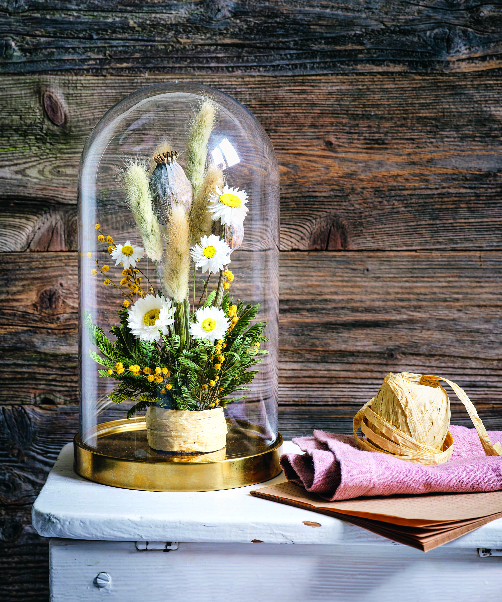 Die Cloche schützt Ihr Design vor Abnutzung und vor dem schnellen Austrocknen an der Luft. Mit der richtigen Pflege kann Ihr Cloche-Display lange halten.