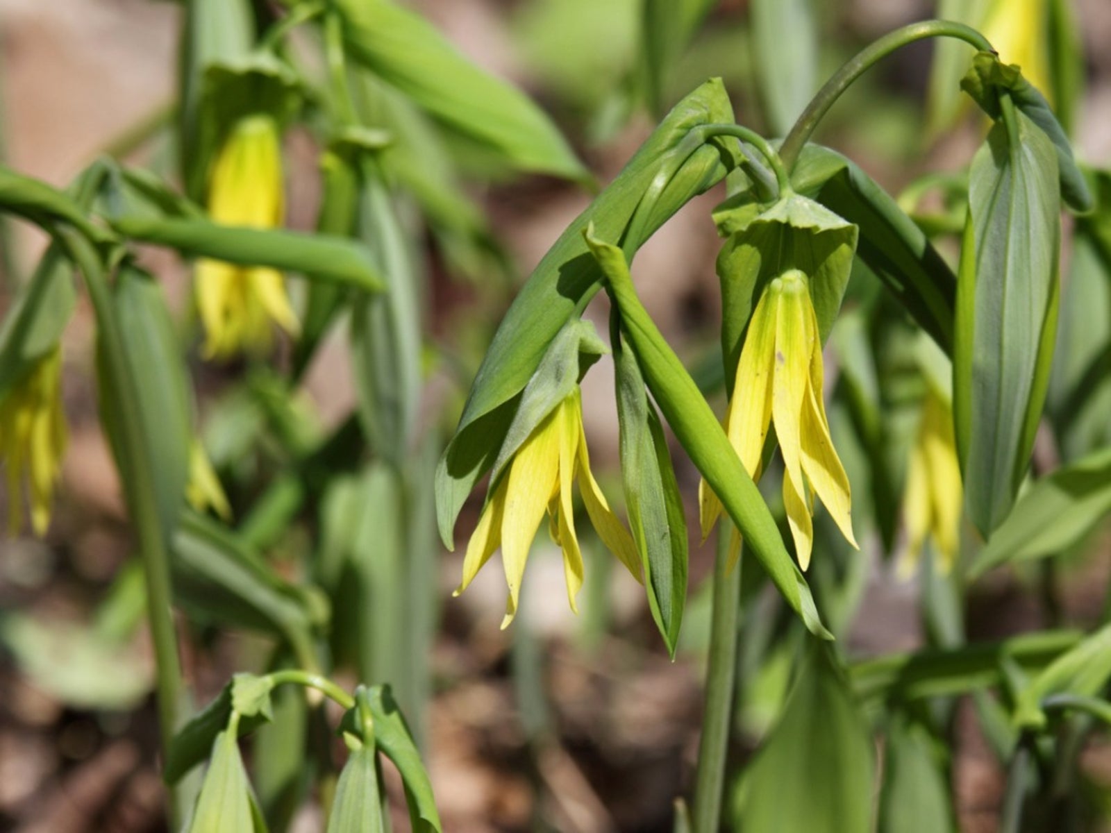 Es gibt fünf Arten in dieser Gattung, Uvularia. Diese Pflanzenfamilie ist nach der Ähnlichkeit der Blüte mit der Uvula sowie nach der Heilkraft der Pflanze bei Halsbeschwerden benannt. Merry Bells ist ein anderer Name für dieses fröhliche kleine Waldkraut. Die einheimischen Pflanzen sind Teil eines gemäßigten Unterholz-Waldökosystems. Glockenblumen werden bis zu 61 cm hoch und 46 cm breit. Der Blätterteppich wächst an schlanken, langgestreckten Stielen und kann lanzenförmig, oval oder sogar herzförmig sein. Im Frühling, etwa von April bis Juni, erscheinen die interessanten Blüten, die in glockenförmigen, buttergelben Gruppen hängen. Die hängenden Blüten sind etwa 2,5 cm lang und bringen eine dreikammerige Frucht hervor.