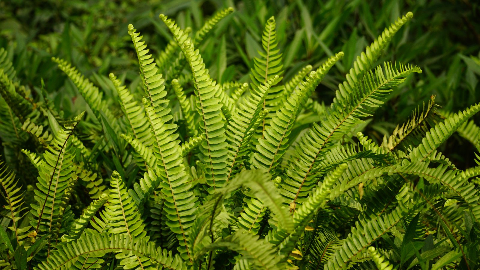 - Polypodium virginianum: Der Virginia-Farn oder Felsen-Farn wächst wild an Klippen, Felsen, Geröll und auf Felsvorsprüngen. Er hat gewölbte, tief eingeschnittene Wedel und bildet im Laufe der Zeit Kolonien von Büscheln.