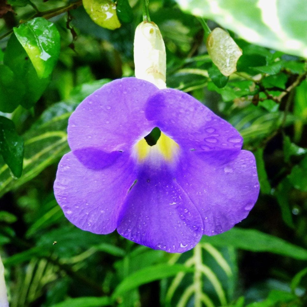 Die Himmelsrebe (Thunbergia grandiflora), auch bekannt als Uhrenrebe, gehört zur tropischen Familie der Acanthaceae und ist in frostfreien Klimazonen immergrün, wo sie auch Früchte trägt, aber bei kühlen Temperaturen verlangsamt sich ihr Wachstum oder kommt ganz zum Stillstand. Sie ist in den Klimazonen 8 bis 11 winterhart. Die Büschel ihrer Trompetenblüten bereichern Ihren Garten mit der lebendigen Atmosphäre ihres Herkunftslandes Indien. Die dramatischen lavendelblauen Blüten vor dem Hintergrund dunkelgrüner, herzförmiger Blätter erhellen Ihren Garten den ganzen Sommer über oder in tropischen Klimazonen sogar das ganze Jahr über. Der Anbau von Himmelsreben ist lohnenswert. Die Pflanze blüht üppig und ihre atemberaubenden Blüten eignen sich hervorragend als Schnittblumen für Gestecke. Diese Rebe ist ideal zum Bedecken von Zäunen, Pergolen, großen Spalieren oder Lauben. Sie bildet lange, wandernde Ranken aus, die sich sogar an einem nahe gelegenen Ast festhalten können und so zu einem interessanten Blickfang im Garten werden. Diese Wuchsform hat der Pflanze auch ihren Namen gegeben. Zu beachten ist, dass diese holzigen, sich windenden, immergrünen Pflanzen invasiv sein können, da sie sich leicht aus Stängelfragmenten oder Teilen der Knollenwurzeln regenerieren können.