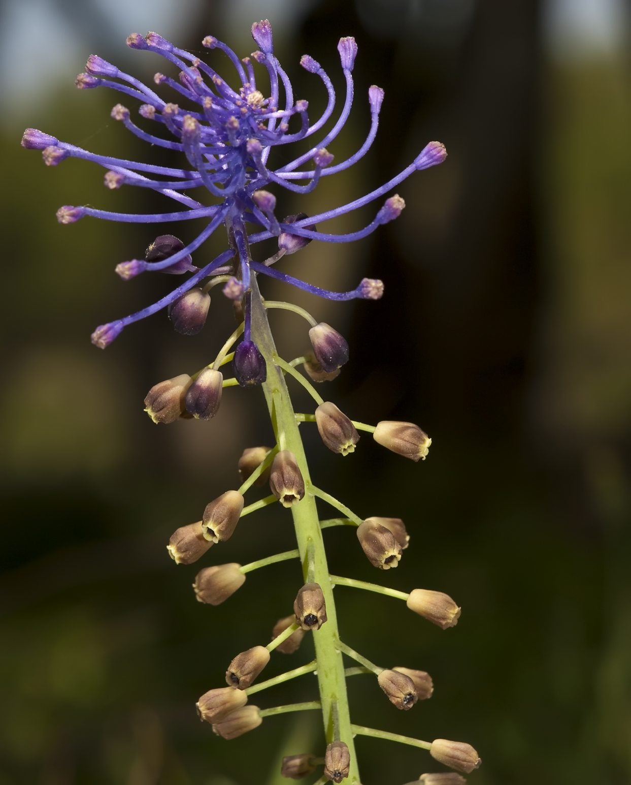 Die Tasselhyazinthe (Leopoldia comosa oder Leopoldia muscari), auch bekannt als Tasselhyazinthe, Fransenhyazinthe oder Moschus-Hyazinthe, ist eine Wildblume, die in der Türkei, im Irak und in Südosteuropa heimisch ist. Tassel-Traubenhyazinthen ähneln den bekannten Garten-Traubenhyazinthen, aber die bräunlich-grünen Blüten sind mit violettblauen, fransenartigen Blütenbüscheln gekrönt. Der untere Teil der Blüten ist fruchtbar, die Quasten hingegen sind steril. Die Zwiebeln der Tassel-Hyazinthe sind winterhart in den USDA-Pflanzenhärtezonen 4 bis 8. Die Tassel-Traubenhyazinthe ist eine Waldpflanze, die halbschattige Standorte bevorzugt. Sie eignet sich gut für Gartenränder, Beete oder entlang von Gartenwegen. Überlegen Sie jedoch sorgfältig, bevor Sie Tassel-Traubenhyazinthen pflanzen. Obwohl die Pflanze in den Vereinigten Staaten nicht heimisch ist, hat sich die Tassel-Traubenhyazinthe in weiten Teilen der Vereinigten Staaten naturalisiert. Sie vermehrt sich schnell und gilt in einigen Gebieten als invasive Pflanze.