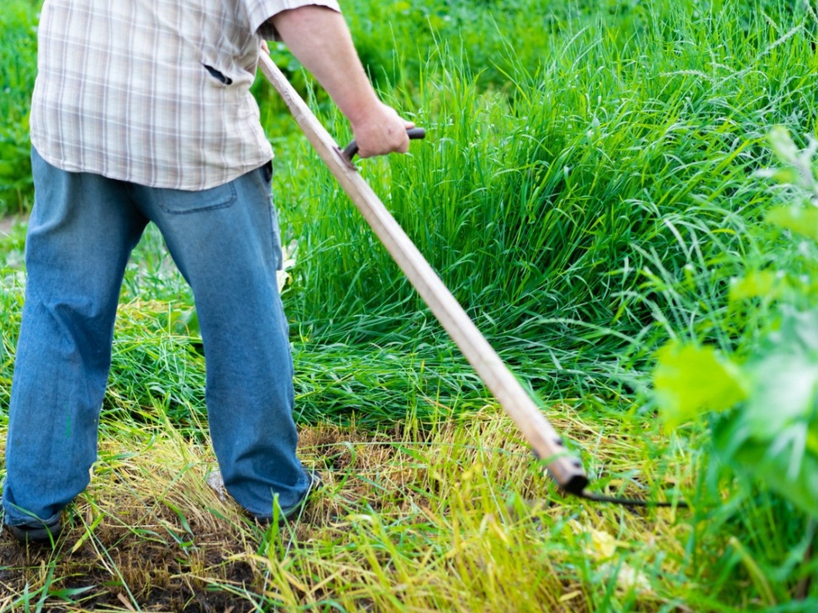 Wie man Gras mit einer Sense mäht