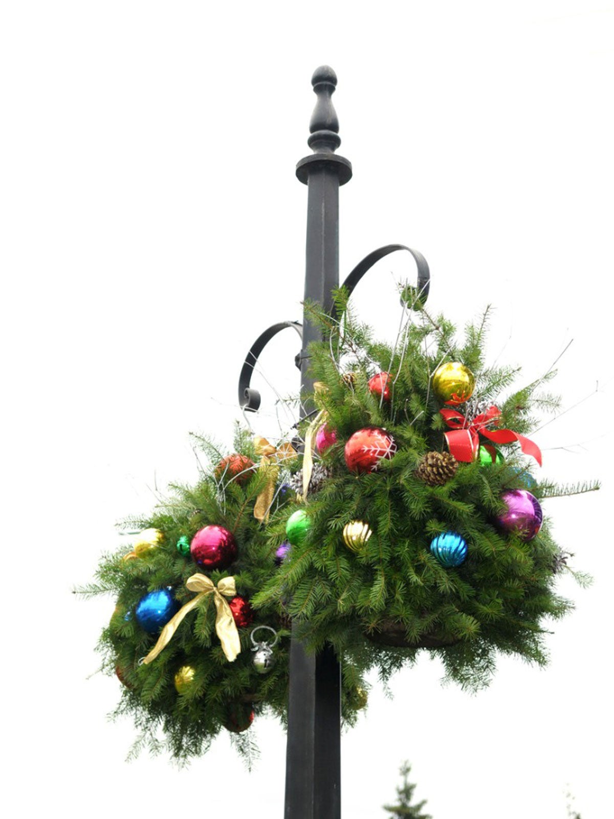 Sie können auch Fächerfarn oder Zedernzweige als Teil dieser Dekorationen für die Feiertage verwenden. Achten Sie auf Einheitlichkeit, damit keiner der Körbe einen abrupten Bruch im Gesamtbild Ihrer Dekoration darstellt.