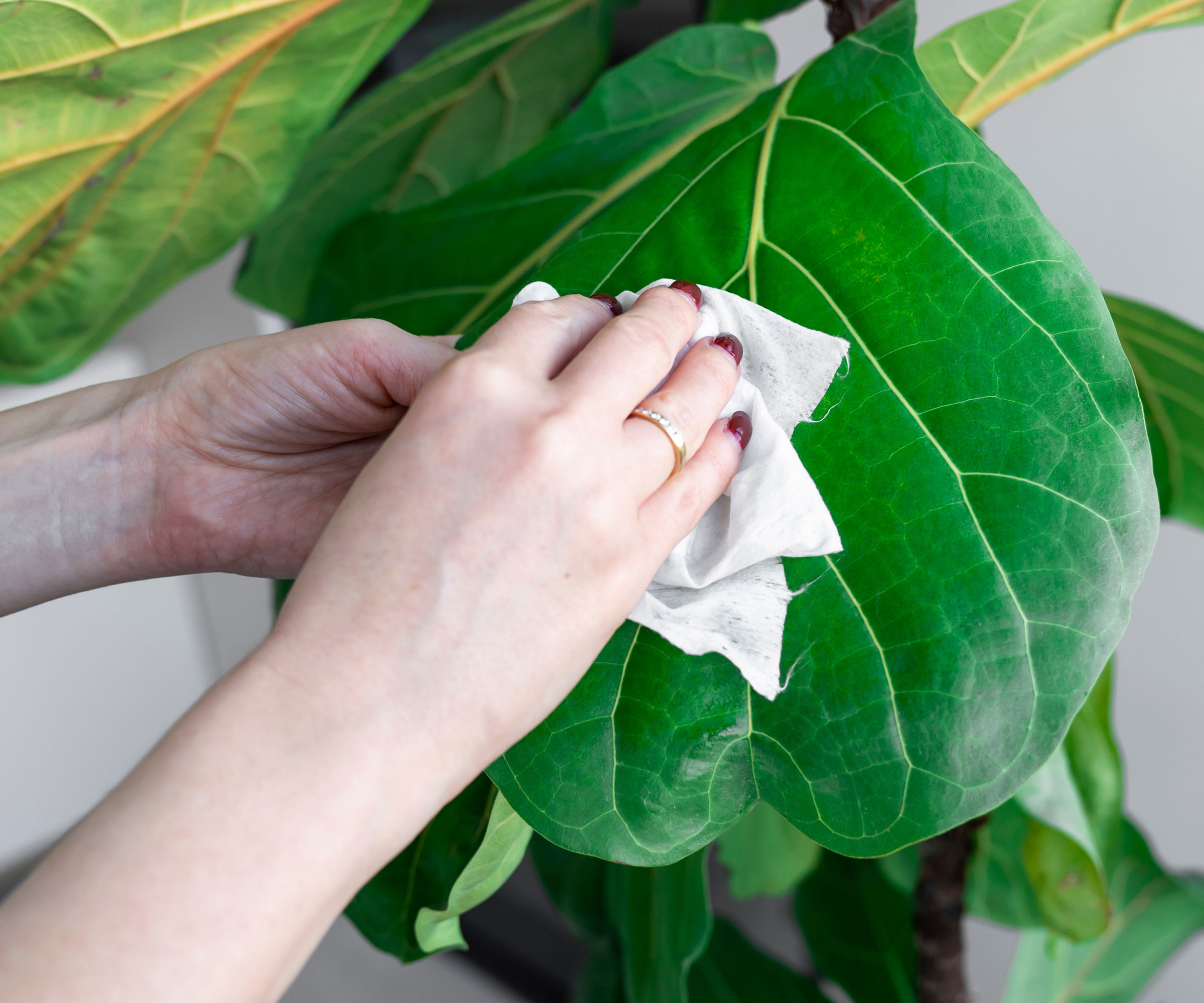- Als Waschmittel anwenden:Wenn Sie einige größere Blätter einer Zimmerpflanze wie beispielsweise einer Geigenblattfeige behandeln möchten, können Sie eine verdünnte Neemöl-Lösung mit einem Mikrofasertuch auf die Blätter (oben und unten) auftragen. Verwenden Sie dazu die Mikrofasertücher von Mr Siga aus dem Amazon-Sortiment, die besonders schonend zu den Blättern sind. Was das beste Neemöl für Pflanzen angeht, ist eines der zuverlässigsten Produkte „Nature’s Will Pure Organic Cold Pressed And Unrefined Concentrated” von Amazon, das besonders wirksam ist, wenn es einer insektiziden Seife beigemischt wird. Achten Sie darauf, dass es verdünnt ist; tragen Sie es niemals in konzentrierter Form auf.