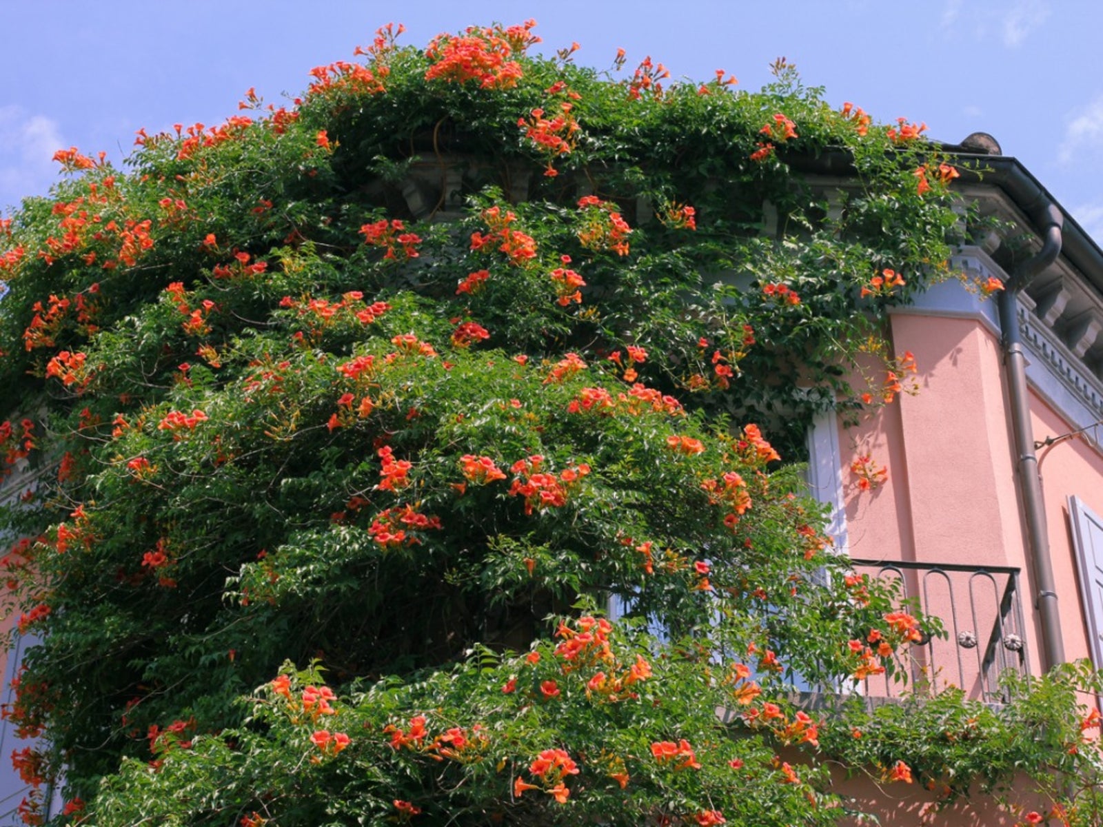 Eine der besten und einfachsten Methoden, um Schäden an den Wurzeln der Trompetenblume zu verhindern, besteht darin, zu verhindern, dass die Zweige den Boden erreichen und neue Wurzeln bilden. Schneiden Sie Ihre Trompetenblume immer so zurück, dass sie nach oben und außen wächst und niemals bis zum Boden. Achten Sie beim Zurückschneiden auch darauf, dass Sie alle heruntergefallenen Rankenstücke aufsammeln. Selbst ein nur 1,25 cm kleines Stück der Ranke kann Wurzeln bilden und zu einer eigenen Ranke heranwachsen. Diese Stücke können bis zu 23 cm tief unter der Erde sprießen, sodass es nichts nützt, sie unterzupflügen. Sammeln Sie sie unbedingt ein und entsorgen Sie sie. Wenn neue Triebe aus unterirdischen Ausläufern sprießen, schneiden Sie sie so tief wie möglich zurück. Selbst mit den besten Absichten können Pflanzen außer Kontrolle geraten, wenn sie nicht richtig gepflegt werden. Achten Sie neben dem Zurückschneiden auch darauf, diese Reben von Ihrem Haus und anderen Strukturen fernzuhalten, die leicht beschädigt werden können.