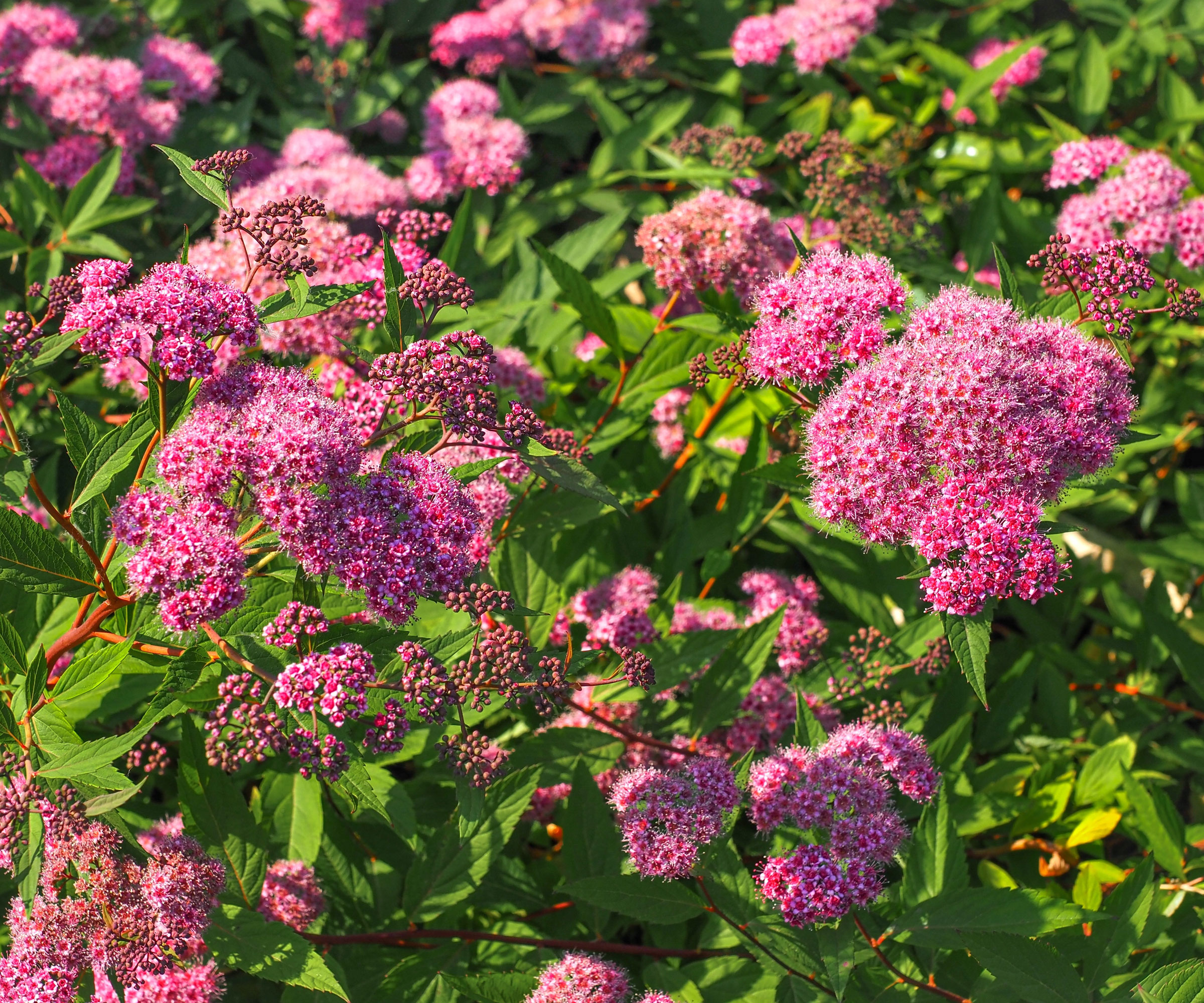 • Spirea: Steeplebush (S. tomentosa) eller meadowsweet (S. alba) uppskattar samma förhållanden, och deras blommor återspeglar rökbuskens blomställningar för ett mjukt och lagerat utseende. De täta grenarna erbjuder också en livsmiljö för nyttiga insekter.