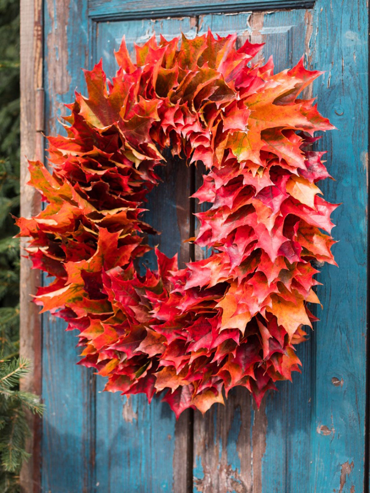 En höstlövs krans utnyttjar höstens färgglada naturliga lövskörd, men oroa dig inte om det är svårt att få tag på riktiga löv. Du kan också använda konstgjorda höstlöv i kransen.