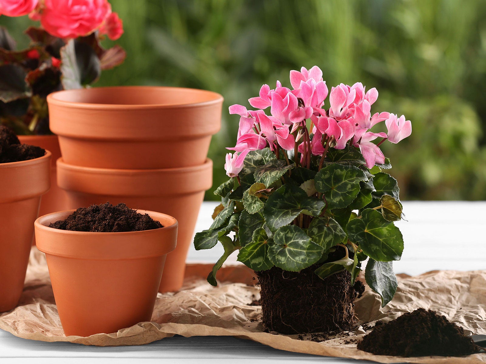 I trädgården planteras cyklamen oftast på hösten. Etablerade växter flyttas vanligtvis till krukor vid denna tidpunkt och tas in inomhus. Genom att plantera cyklamen i krukor kan odlare behålla sina favoritvarianter under hela vintern och till och med uppmuntra dem att blomma. För att trivas bäst växer cyklamen i krukor som är dubbelt så djupa och breda som plantans rotklump.