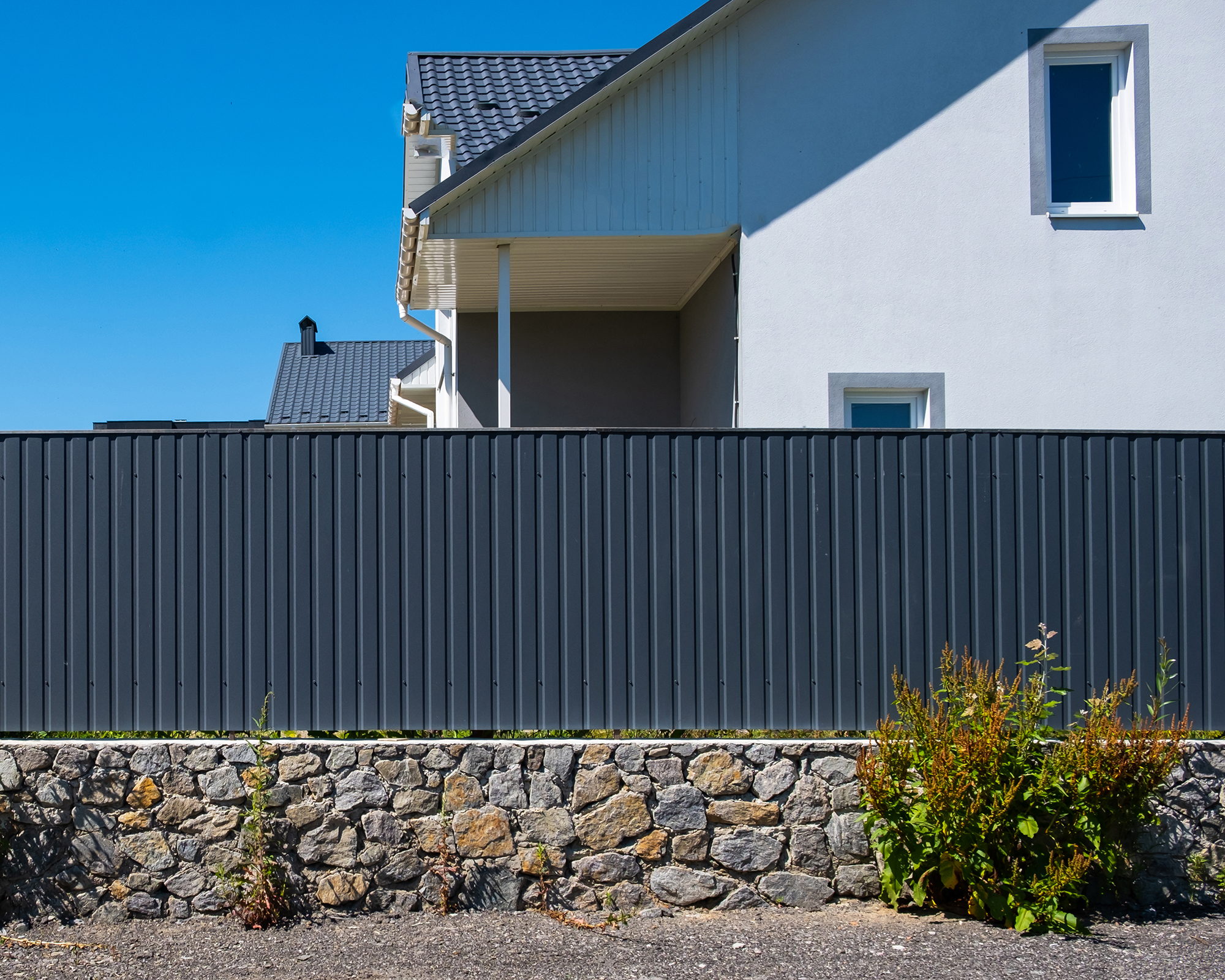 El metal corrugado ofrece una estética moderna para las vallas. Como opción de bajo mantenimiento, suele estar fabricado con aluminio, acero galvanizado u otras aleaciones metálicas. Las vallas metálicas son resistentes a las plagas, la putrefacción y el óxido, por lo que requieren un mantenimiento mínimo. Proporcionan una excelente privacidad y seguridad, y también pueden ser muy decorativas. En cuanto al coste, pueden ser menos caras que la madera, dependiendo del metal específico. El cobre o el acero Corten, por ejemplo, son más caros.