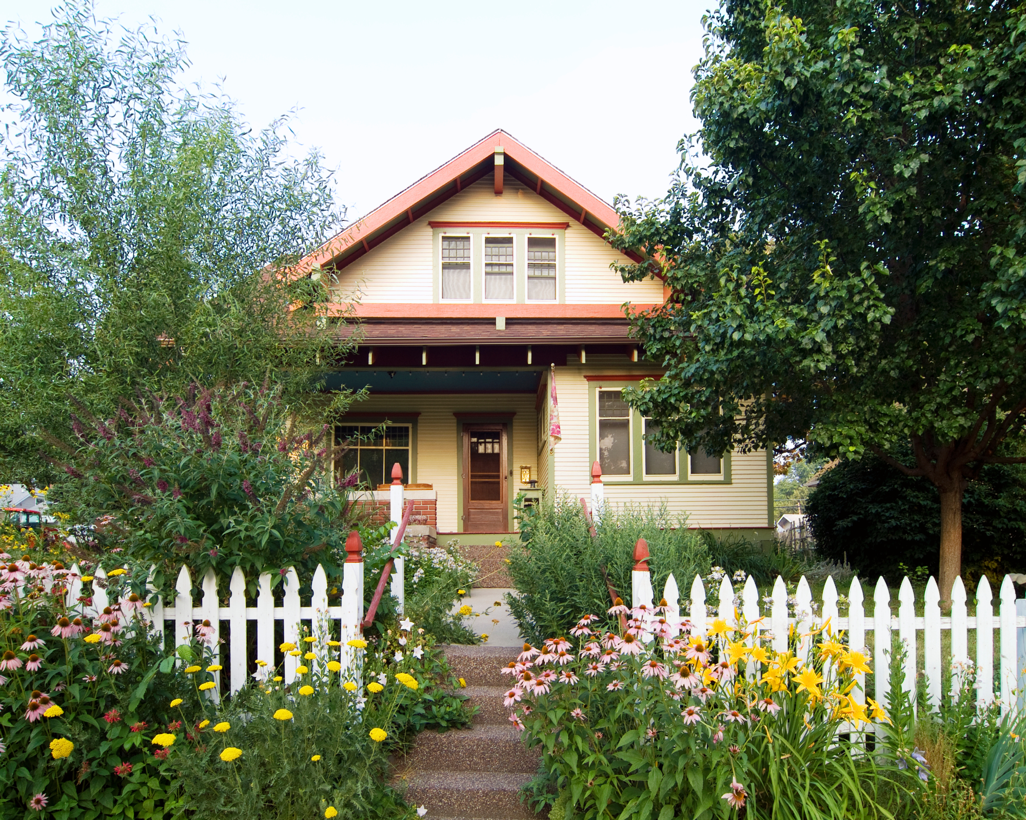 Un clásico atemporal, la pequeña valla blanca de estacas es una opción icónica. Para ciertas casas antiguas más pequeñas, sigue siendo la opción por excelencia. También es adorable y favorece la tendencia cottage core, combinada con flores perennes vintage.
