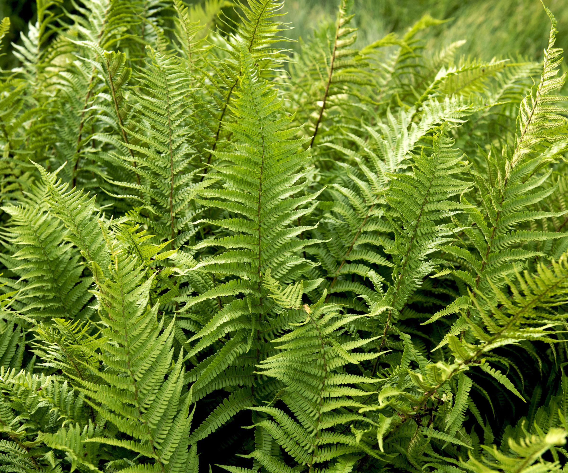 La mayoría de los helechos prosperan en la sombra, y muchas especies son autóctonas de América del Norte. Algunos ejemplos son el helecho culantrillo, el helecho hembra, el helecho canela y el helecho avestruz. Se pueden encontrar helechos autóctonos de varios tamaños, desde 25 cm de altura hasta 1,2 m. Estas son algunas de las plantas autóctonas de sombra mejor adaptadas. Las zonas más sombreadas del jardín, donde poco más crece, son perfectas para los helechos. Muchos helechos prefieren suelos húmedos, por lo que no se deben cultivar en zonas secas.