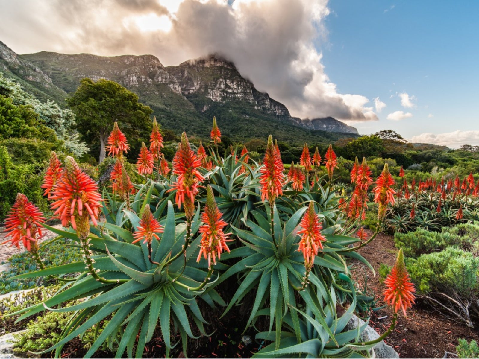 En Sudáfrica se puede cultivar cualquier planta que tolere el calor. Sin embargo, limitarse a las autóctonas ayudará enormemente a reducir la factura del agua. La protea es una planta silvestre con una belleza prehistórica. Las pokers rojas, con su descriptivo nombre, crean brillantes reflejos naranjas en el jardín. La strelitzia, más conocida como ave del paraíso, es una planta altísima con una llamativa flor parecida a una grulla. Otras plantas autóctonas son:
