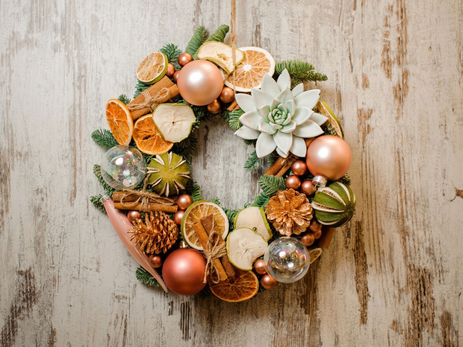 Para darle un toque diferente a estas fiestas, plantéate hacer una corona de frutas secas. Las coronas de frutas para Navidad no solo son elegantes, sino que estos sencillos proyectos de manualidades también impregnan la habitación de un aroma cítrico y fresco. Aunque las coronas de frutas DIY son fáciles de montar, es fundamental deshidratar bien la fruta primero. Si se conserva correctamente, una corona con fruta seca durará años.
