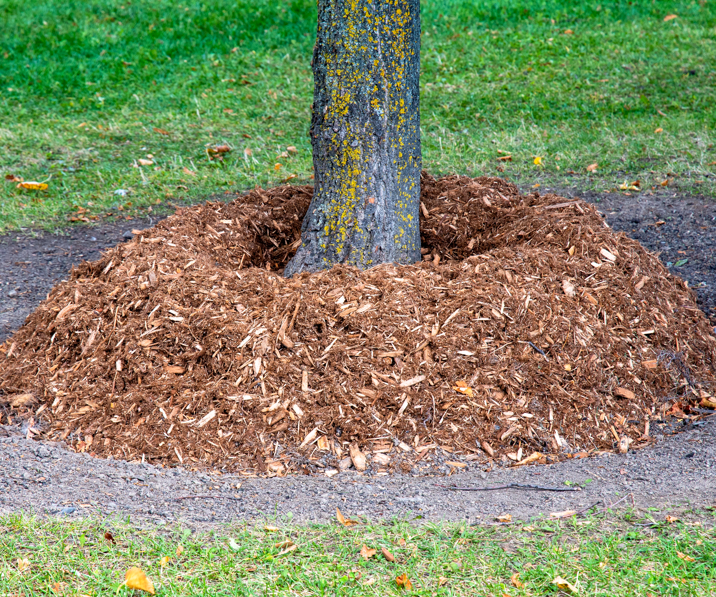 Evite el acolchado en forma de volcán. Esto ocurre cuando se amontona el mantillo alrededor del tronco de un árbol formando una especie de «volcán». Esto mantiene el tronco constantemente húmedo, lo que aumenta la incidencia de enfermedades fúngicas y la presencia de algunos tipos de insectos, como las hormigas carpinteras. Asegúrese de mantener el mantillo alejado de los troncos de los árboles y las plantas leñosas y no lo coloque a más de 10 cm de profundidad.Por último, dependiendo del mantillo que elijas utilizar, es posible que tengas que retirarlo o sustituirlo en primavera, cuando las temperaturas se calientan y las plantas comienzan a brotar.