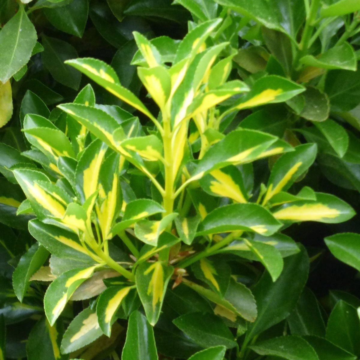La información sobre el euonymus dorado indica que se trata de un arbusto muy denso con forma ovalada si se cultiva a pleno sol. Su frondoso follaje lo hace ideal para crear un seto que proteja la intimidad o incluso aísle del ruido. Estos arbustos son realmente llamativos en el jardín. Las hojas del euonymus son coriáceas al tacto y crecen hasta alcanzar los 7,5 cm de largo. El follaje, con sus llamativos colores, es lo más destacado. La mayoría de las hojas son de color verde esmeralda salpicadas generosamente de amarillo ranúnculo. Sin embargo, en ocasiones, hay ramas en las que todas las hojas son de color amarillo intenso. No espere flores vistosas. Las flores de color blanco verdoso aparecen en primavera, pero es posible que ni siquiera las note. Son muy discretas. Los arbustos de euonymus dorado pueden alcanzar los 3 m de altura y 2 m de ancho. Uno solo puede ser un elemento llamativo en su jardín. Sin embargo, el denso follaje de estas plantas de hoja perenne se adapta fácilmente a la poda e incluso al corte, por lo que a menudo se utilizan como setos.