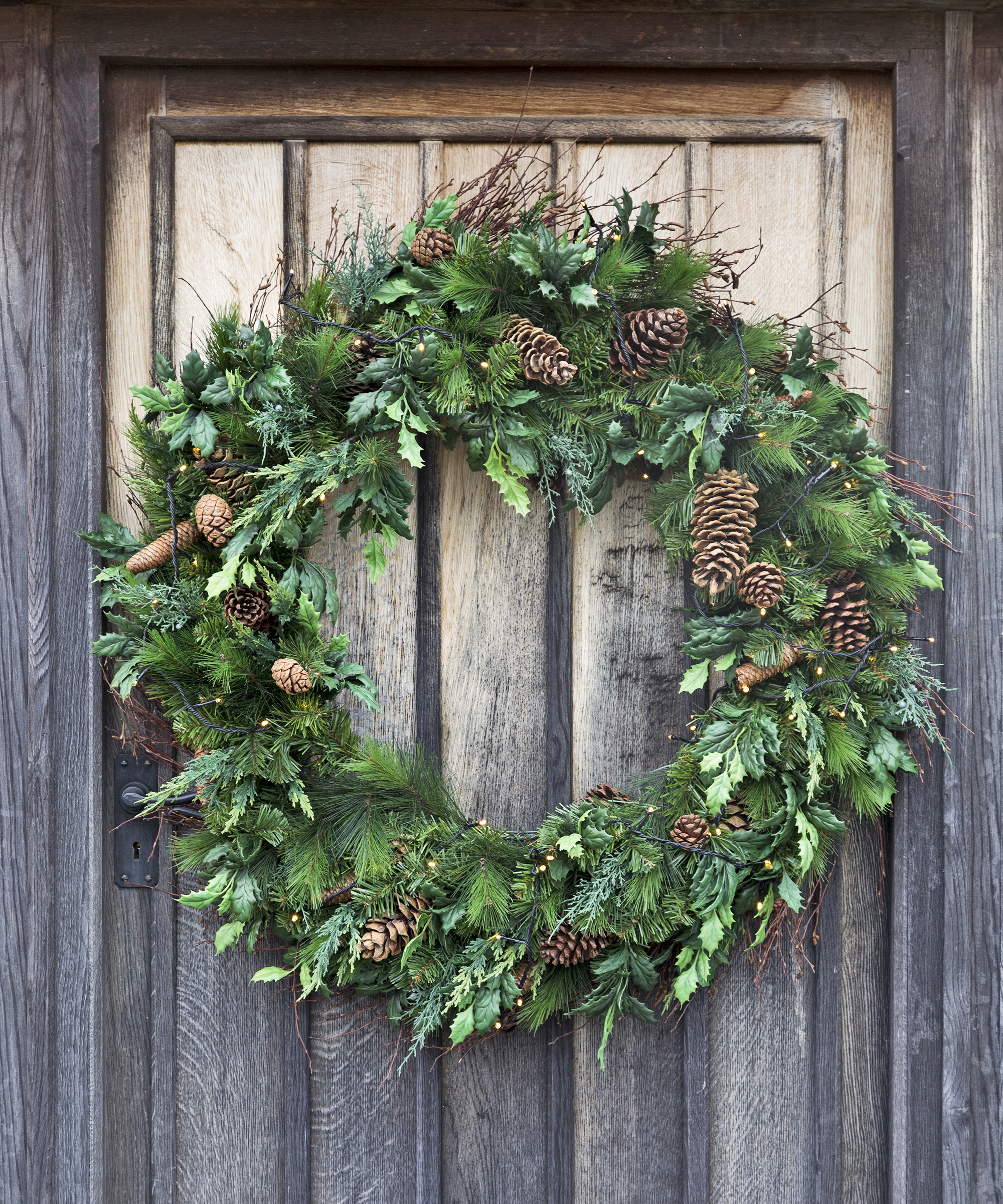 Consejo profesional: evite colocar la corona bajo la luz solar directa, lo que puede ocurrir más a menudo de lo que cree en invierno. Esto ayudará a que las hojas y las agujas se mantengan en buen estado durante más tiempo.