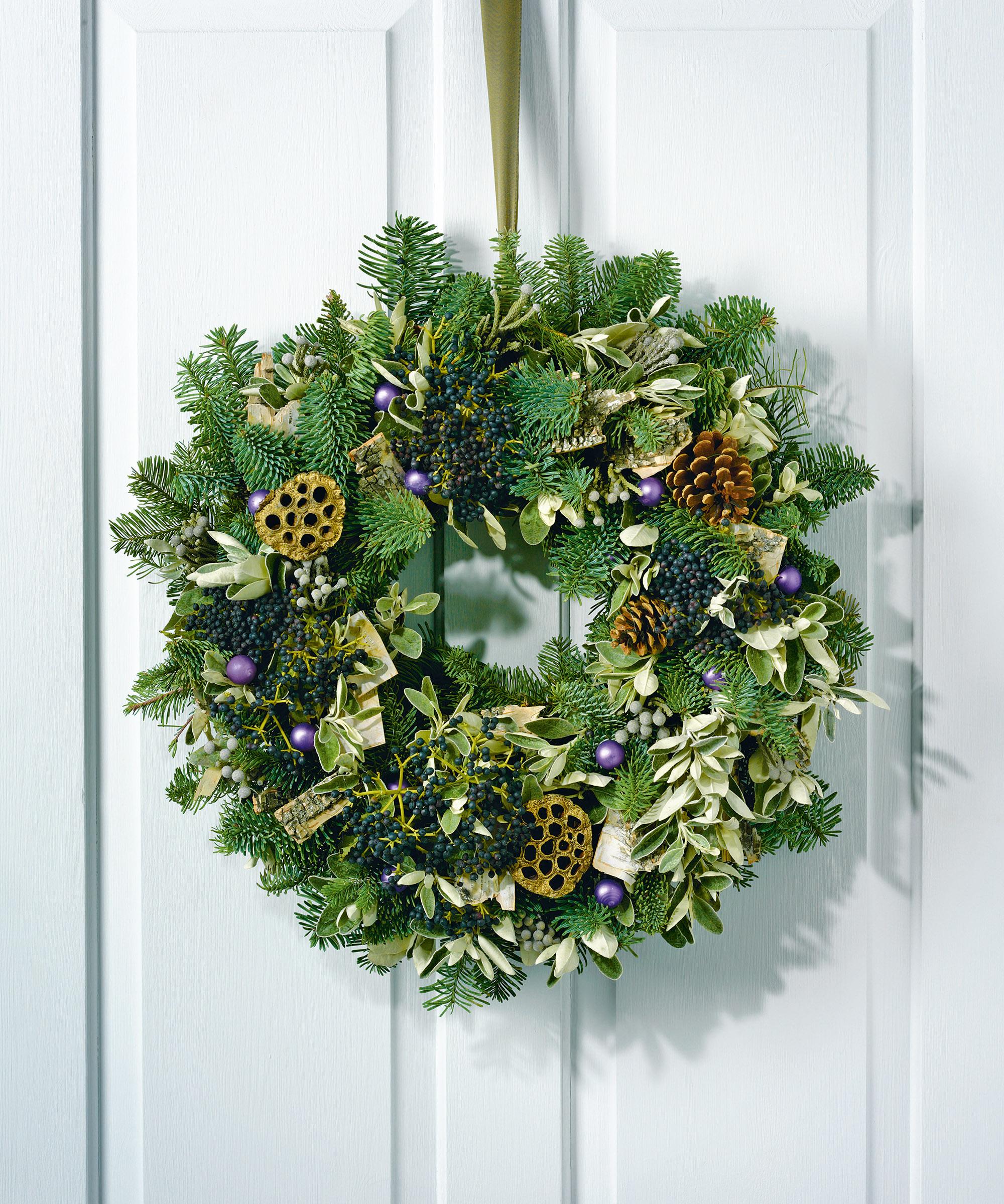 Para dar fragancia a tu corona, entrelaza algunas ramitas de romero, tomillo o una vieja favorita, la lavanda. Estas hierbas harán que tu hogar huela tan bien como se ve.