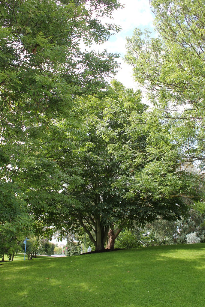 Esta belleza caducifolia ofrece color e interés durante todo el año en el paisaje. Sus hermosas hojas grandes se vuelven de un naranja brillante en otoño, mientras que en primavera todo el árbol se cubre de tallos florales de color blanco cremoso de 31 cm de largo, acentuados con un toque de rojo, y los brotes invernales son de un alegre color rojo brillante.
