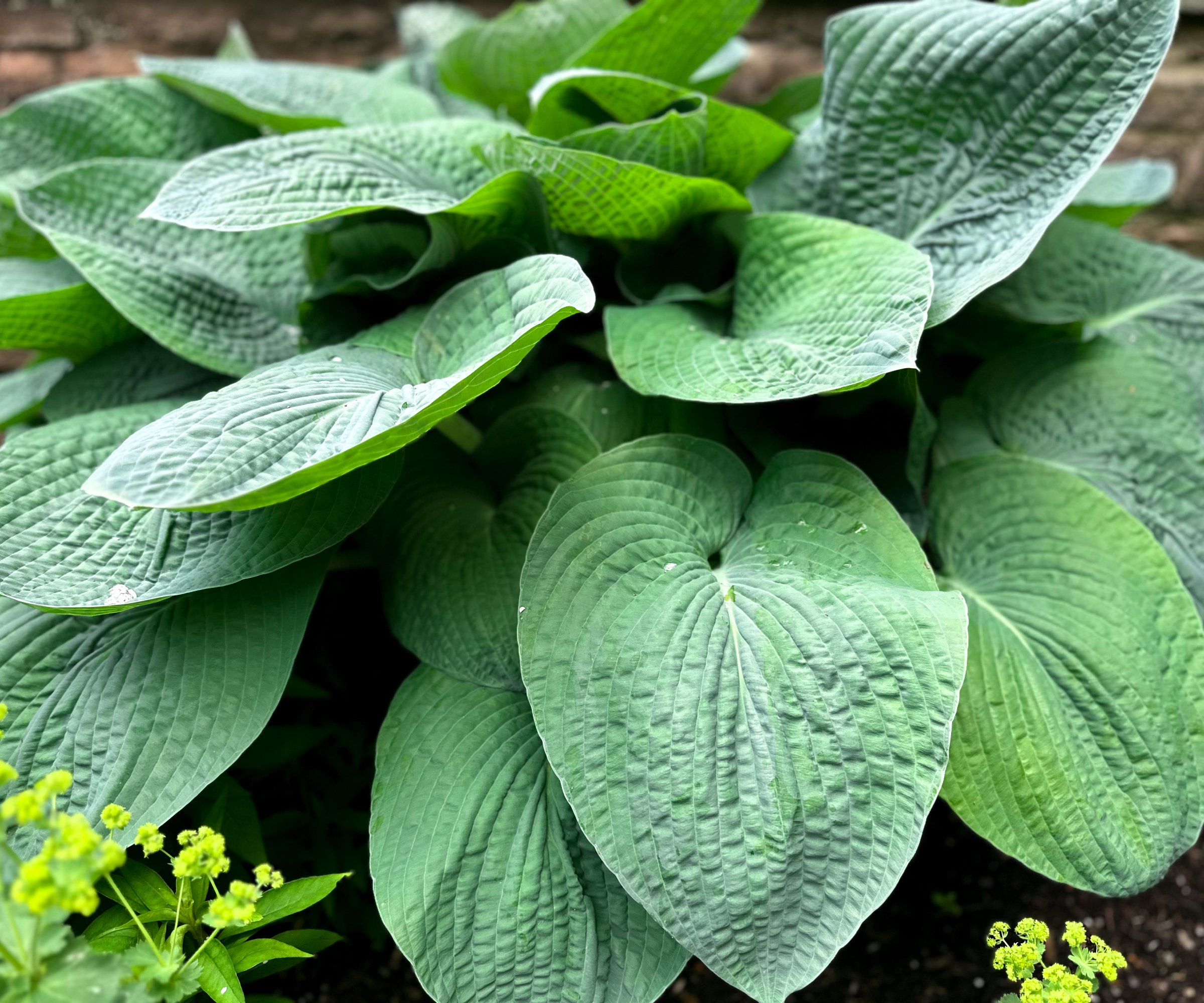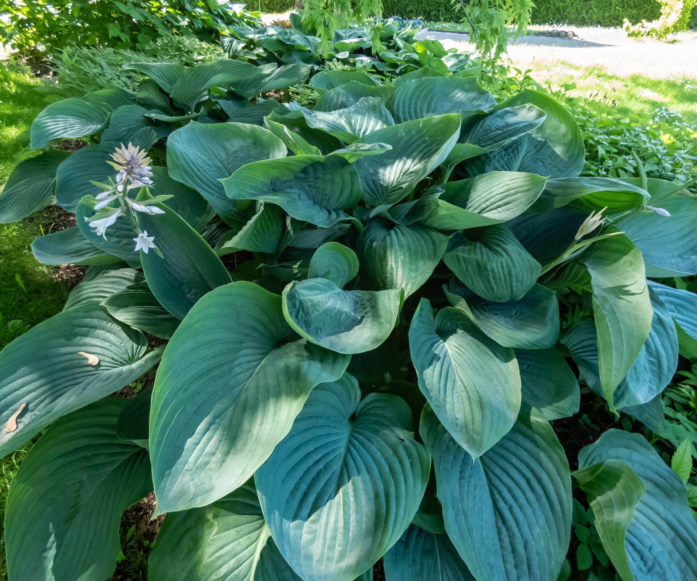 La «Blue Angel» es una de las hostas azules más grandes, ya que alcanza hasta 0,9 m de altura y 1,8 m de ancho.