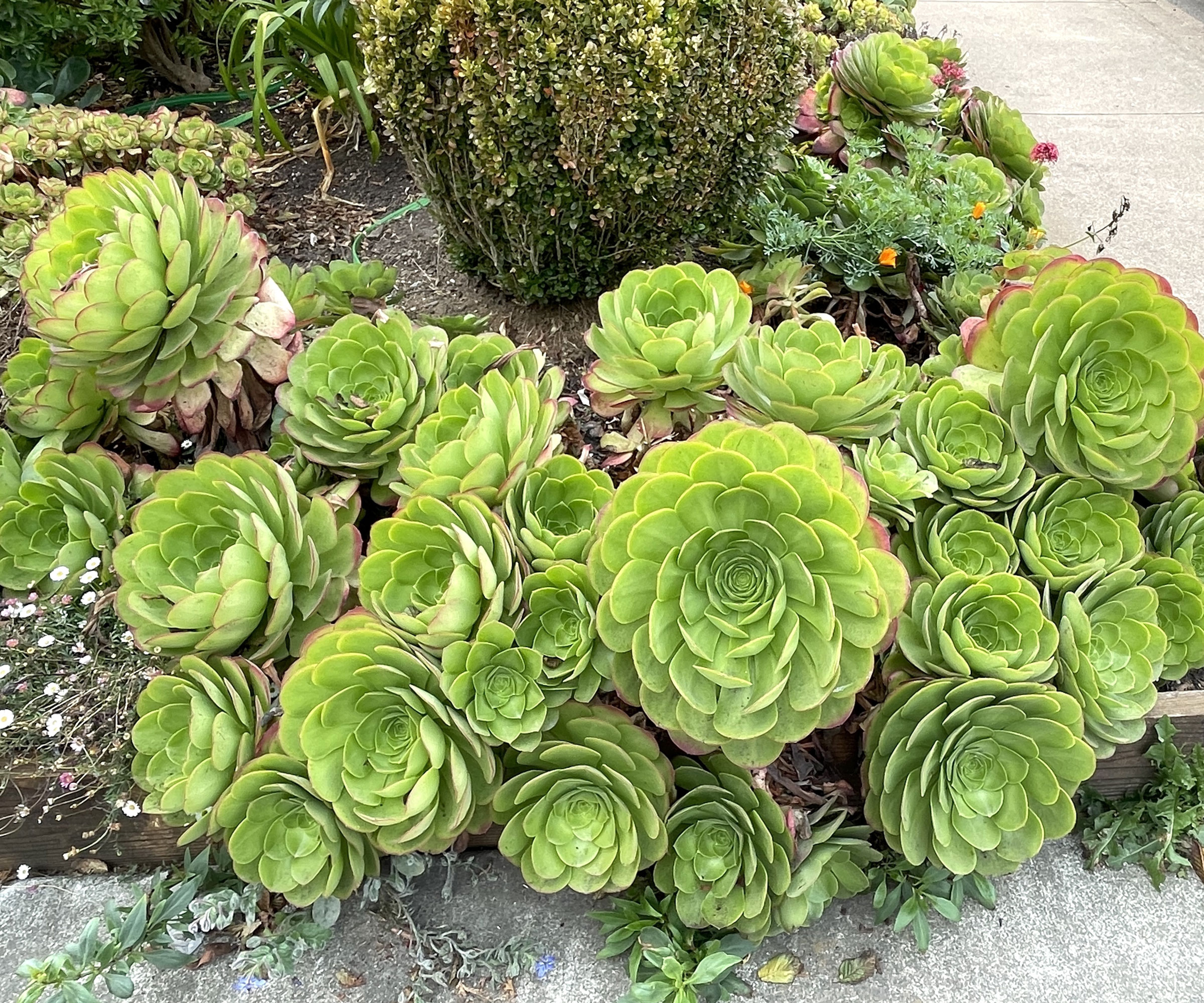 Durante un tiempo, recogí todo lo que encontré, dejé que los extremos se secaran durante un día o dos y luego los planté. Mi tasa de éxito fue de alrededor del 80 %. Los planté en parterres delante de la casa, detrás de la casa y en macetas del patio. Coloqué los más altos al fondo y los más bajos delante. En solo un año, los parterres de mi jardín trasero se llenaron de una hermosa mezcla de estas plantas fáciles de cuidar. Pasé de ser alguien que buscaba esquejes a alguien que sacaba recortes de suculentas y les decía a los vecinos que se sirvieran ellos mismos.