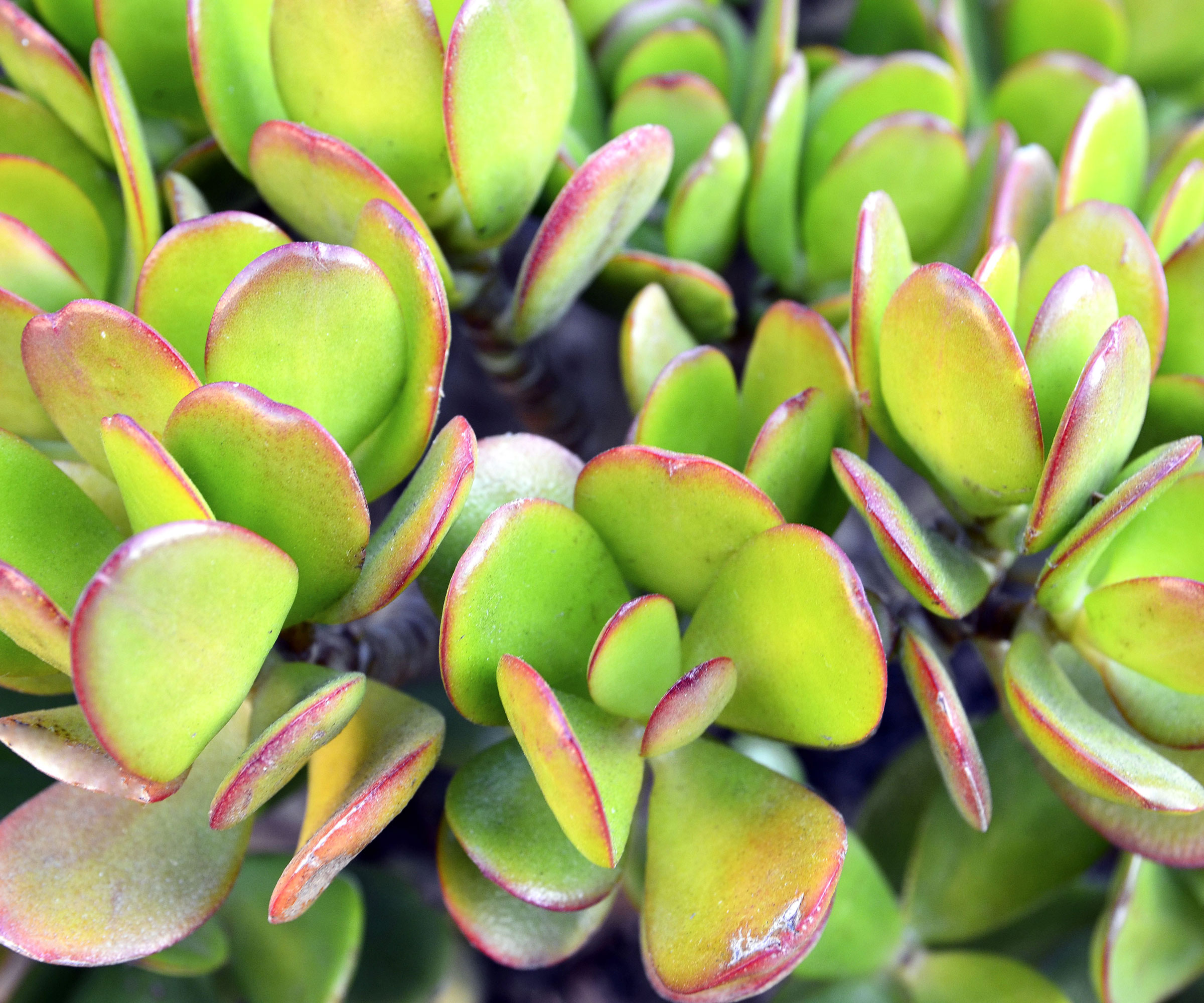 Oh, cómo me gustan mis plantas de jade (Crassula ovata). Parecen pequeños árboles, con sus hojas carnosas que crecen en tallos leñosos. Tengo algunas plantas de jade en macetas que miden 30 cm de altura, mientras que otras, en el exterior, son más altas que yo. También crecen mejor en las zonas más cálidas. Sin embargo, tengo que ser completamente sincera: aunque se dice que traen éxito financiero, todavía no he visto ese efecto.
