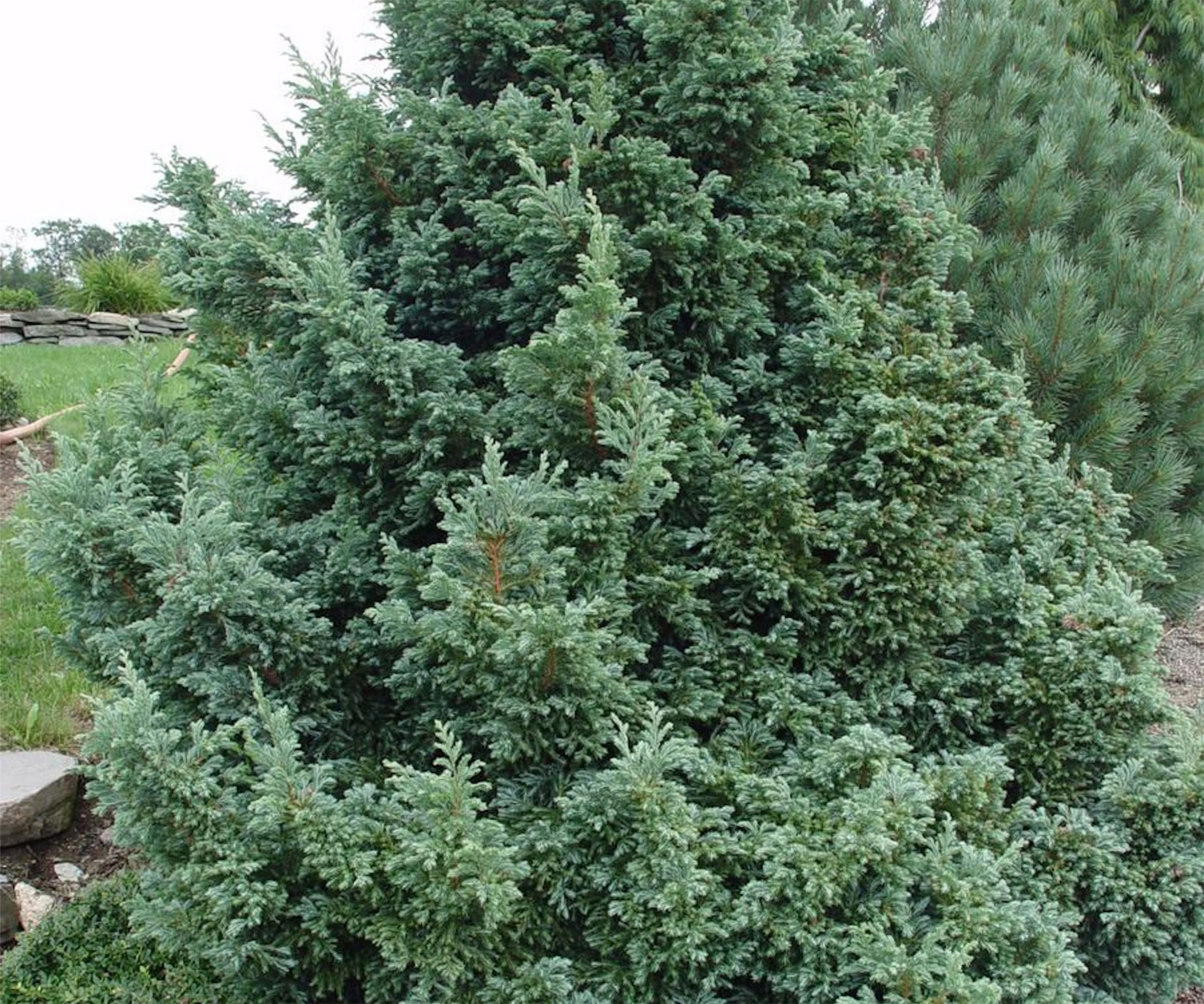 Este árbol de hoja perenne de crecimiento lento tiene la forma clásica de un mini árbol de Navidad. Incluso cuando madura, conserva la forma piramidal. El follaje azul verdoso es particularmente atractivo y se puede podar para mantener el tamaño o incluso convertirlo en un topiario.