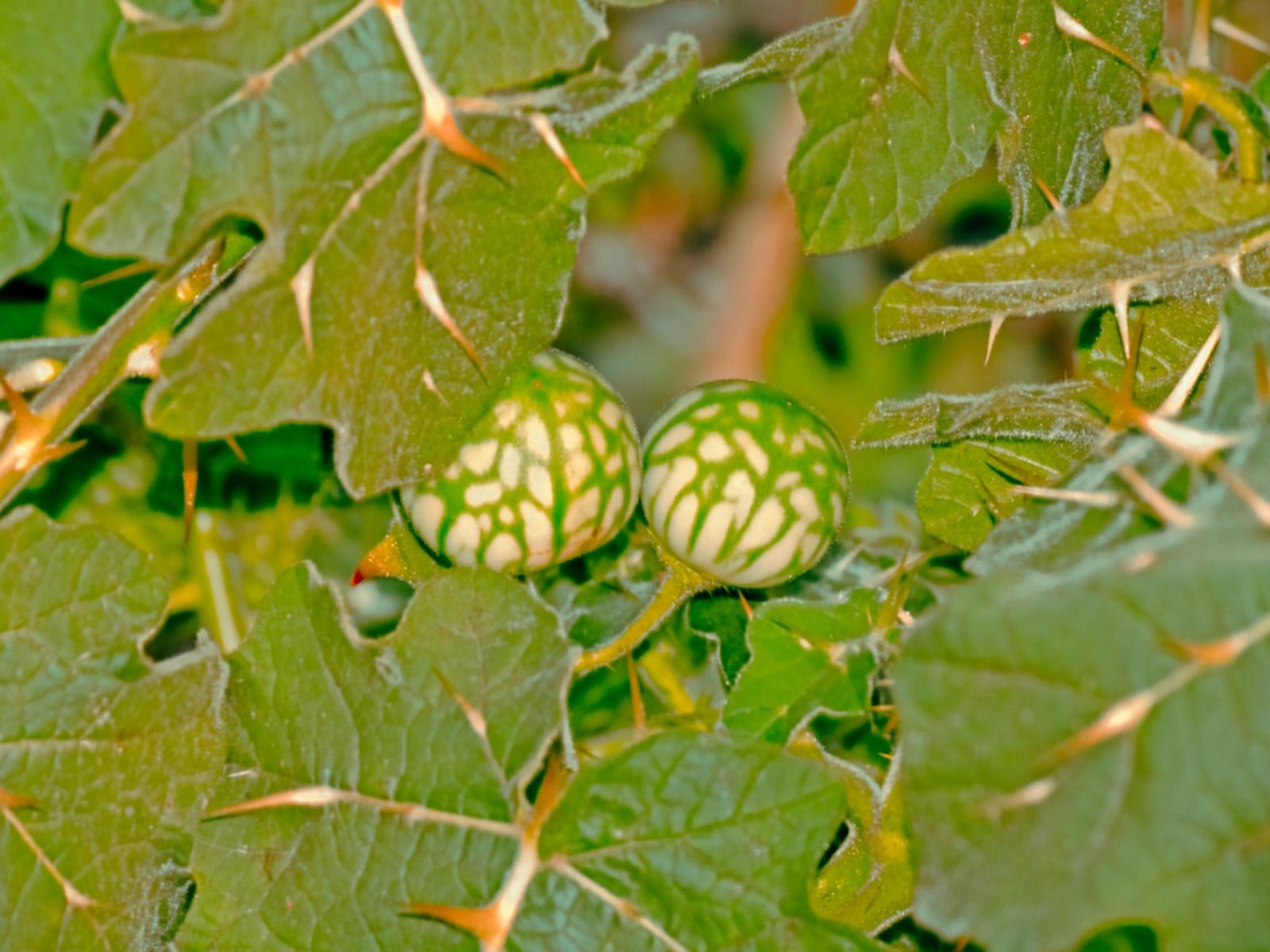 Originaria de Brasil y Argentina, la maleza tropical manzana de soda es un miembro de la familia Solanaceae o Solanáceas, que también incluye la berenjena, la patata y el tomate. Esta planta herbácea perenne crece hasta alcanzar una altura de entre 1 y 2 metros, con espinas de color blanco amarillento en los tallos, las hojas y los cálices. La maleza tiene flores blancas con centros o estambres amarillos, que se convierten en frutos verdes y blancos moteados que se asemejan a pequeñas sandías. Dentro del fruto hay entre 200 y 400 semillas pegajosas de color marrón rojizo. Cada manzana de soda tropical puede producir 200 de estos frutos.