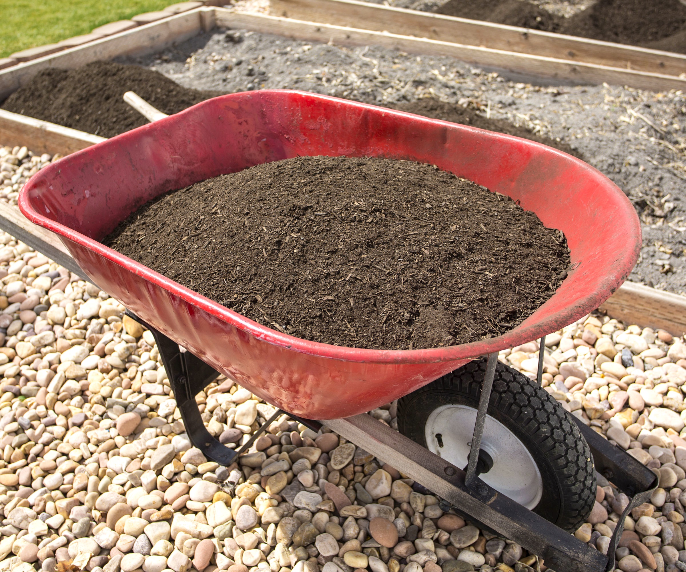 Aborda esto con sensatez y utiliza una carretilla resistente que esté a la altura de la tarea, ya que puede haber algunas rocas muy grandes que retirar y reubicar. Elija una que sea resistente pero fácil de usar, como la carretilla para jardín Best Choice Dual-Wheel Home Utility Yard Wheelbarrow de Amazon, muy bien valorada. También necesitará una buena pala y una azada para extraer y trabajar la tierra más grumosa. Elija una que sea duradera y cómoda de usar durante largos periodos de tiempo, como la azada de jardín Expert Gardener Fiberglass D-Handle Garden Spade de Walmart.
