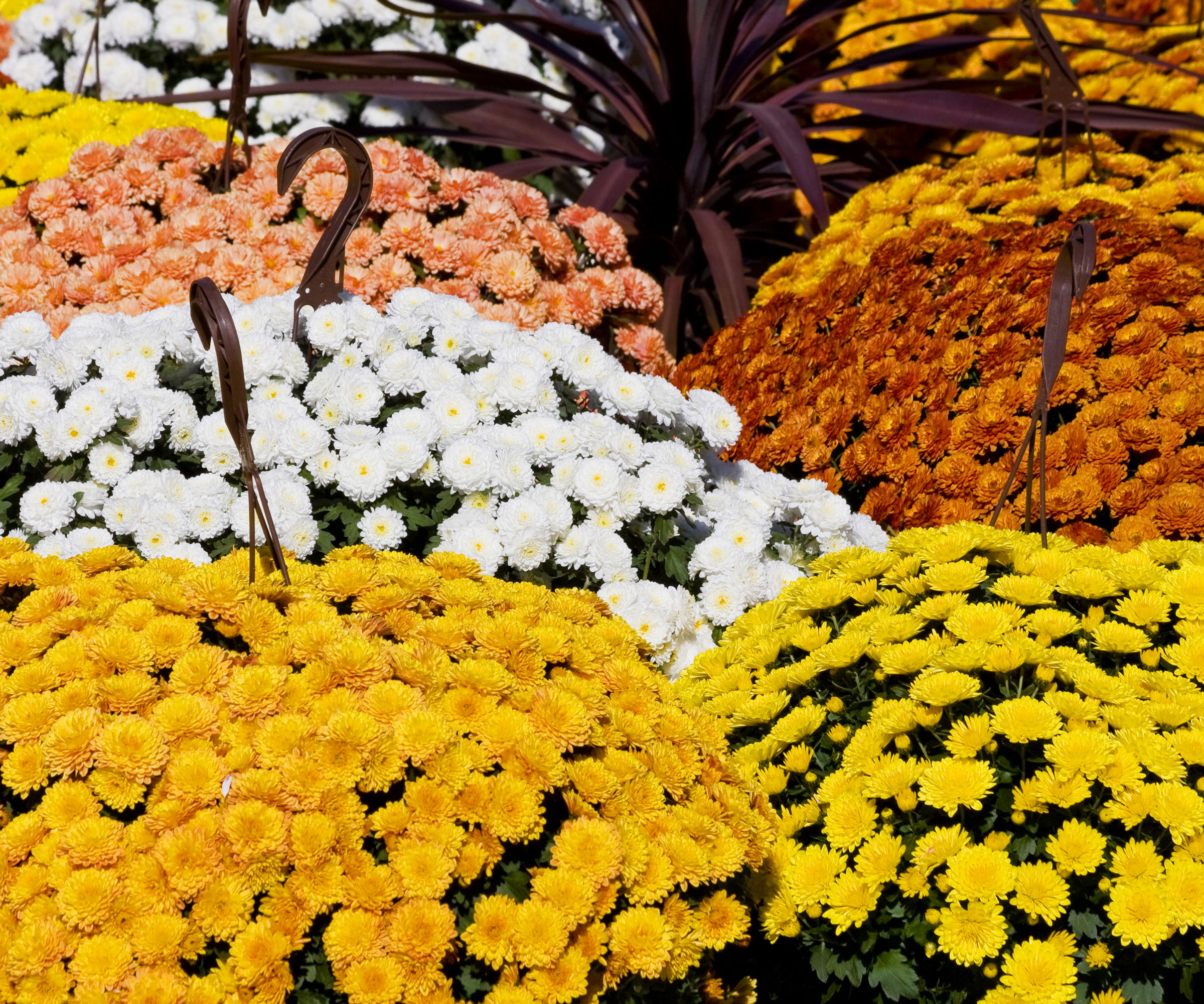 Krysantemum är en av de bästa höstblommorna för hängande korgar. Krysantemum är kända för sin sena blomning och livfulla färgpalett. Deras blomningsperiod är direkt kopplad till dagslängden, vilket gör dem extremt användbara för att ge verandan och uteplatsen höstfärger.