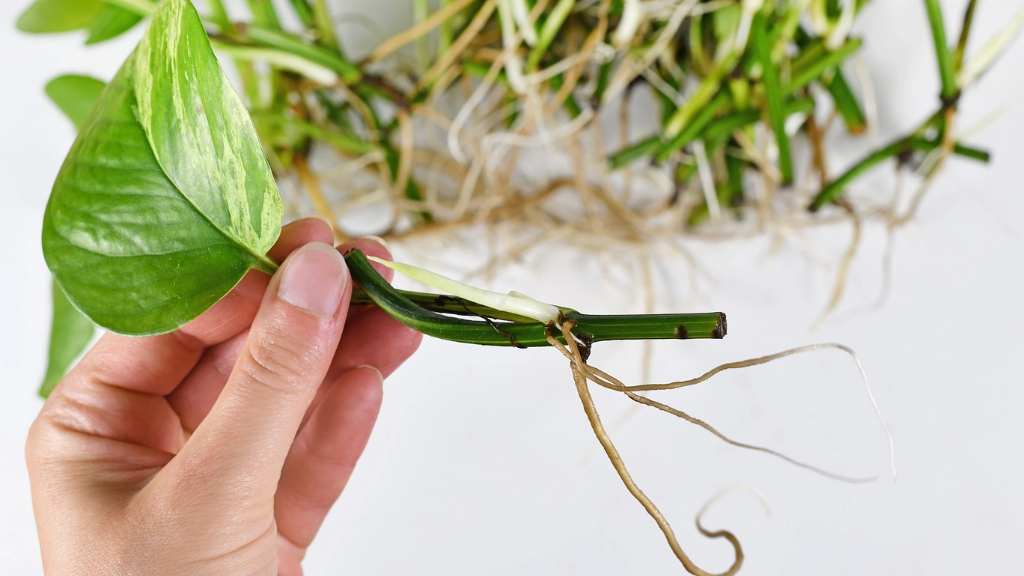Jag har upptäckt att några av de lättaste växterna att rota med sticklingar är Schefflera, tumväxt, pothos och julkaktus. Jag skär bara av några stjälkar och sätter dem i krukväxtjord. Tumväxt och pothos rotar också i vatten. Det är viktigt att snabbt flytta de rotade sticklingarna till jord, annars kommer de att ha svårt att acklimatisera sig till det nya mediet. Om du vill kan du doppa sticklingen i rotningshormon innan du planterar den. Det ska ge din stickling en bättre chans att rota sig.